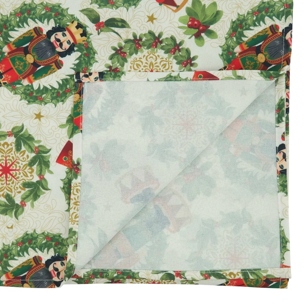 The perfect backdrop for your Christmas dinner table, this charming and whimsical Nutcracker Design Table Runner helps set a festive tabletop for the holiday season. With rich, deep tones of red, white and green, the runner is easy to pair with other Christmas-inspired table linens. You can also match it with placemats from the same collection.Features: