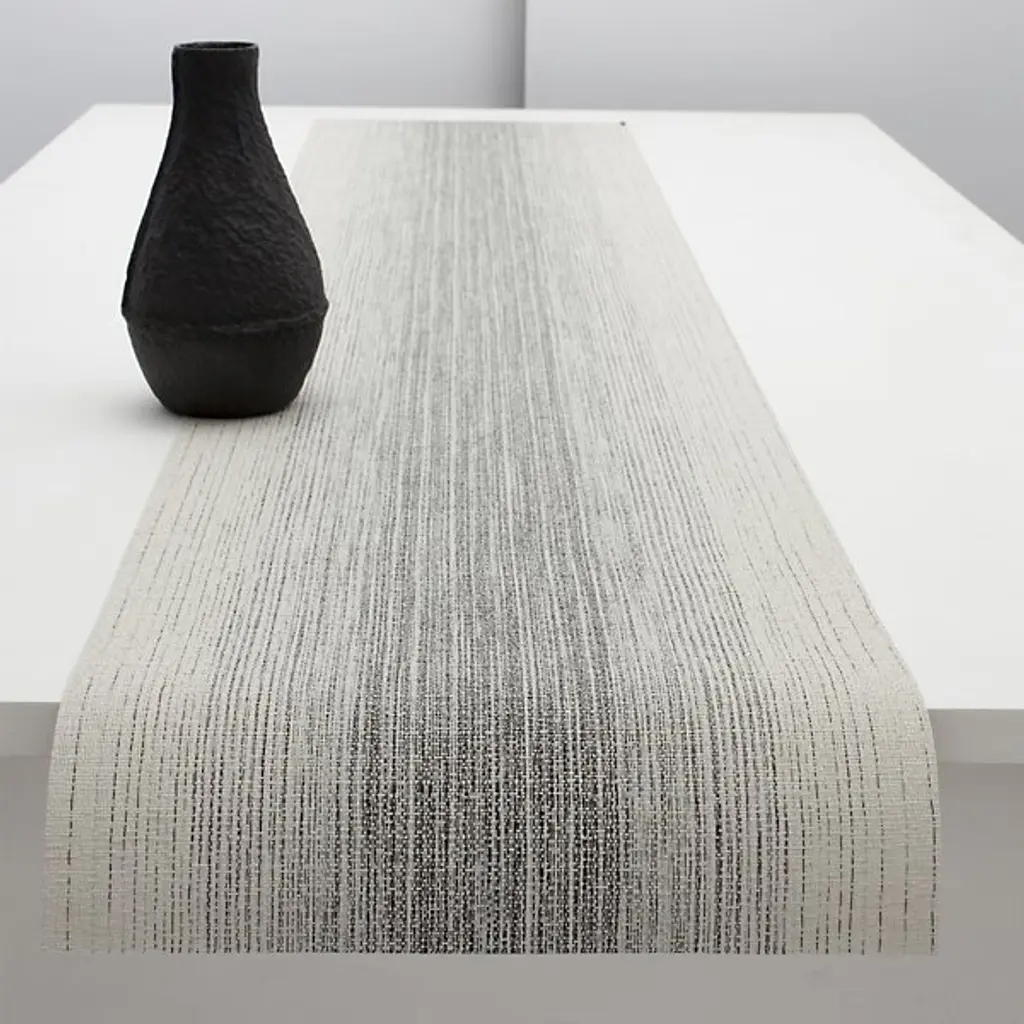 The Chilewich Ombre Table Runner uses signature bi-color yarns to create a gradual change in color. Each of the yarns share a common hue, which helps to create an organic shift without being too harsh. Fashionable with an artistic edge, the earth tone hues will complement a range of interior decors while still making a statement.