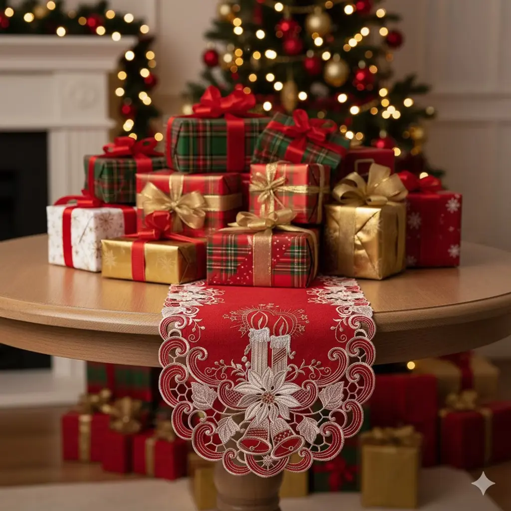 Embroidered rendered in intricate cutwork with details and vibrant colors table linens collection. A great in-style accent to all formal and casual dinners for cozy and warm! Our unique designs and rich details are a must have home fashion with a touch of elegant sense. Keep up with different occasions and ever changing colors of the holidays and seasons by adding a stunning piece to tie your existing interior decor together, or simply use it for an easy care focal point for parties and events. Our embroidered table linen home Fashions and creations will complete the table decor with class! The fabric is Machine Wash and water resistant for easy case. Simply roll and lay flat for storage.