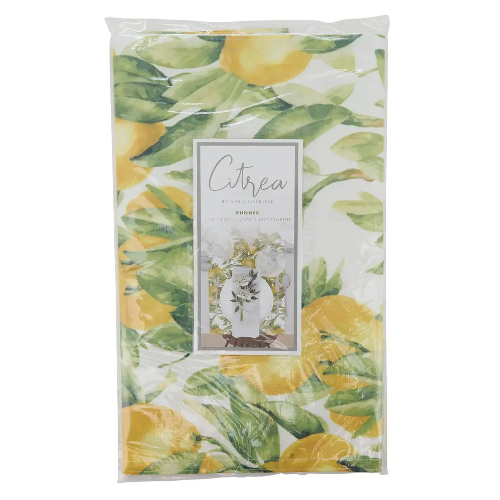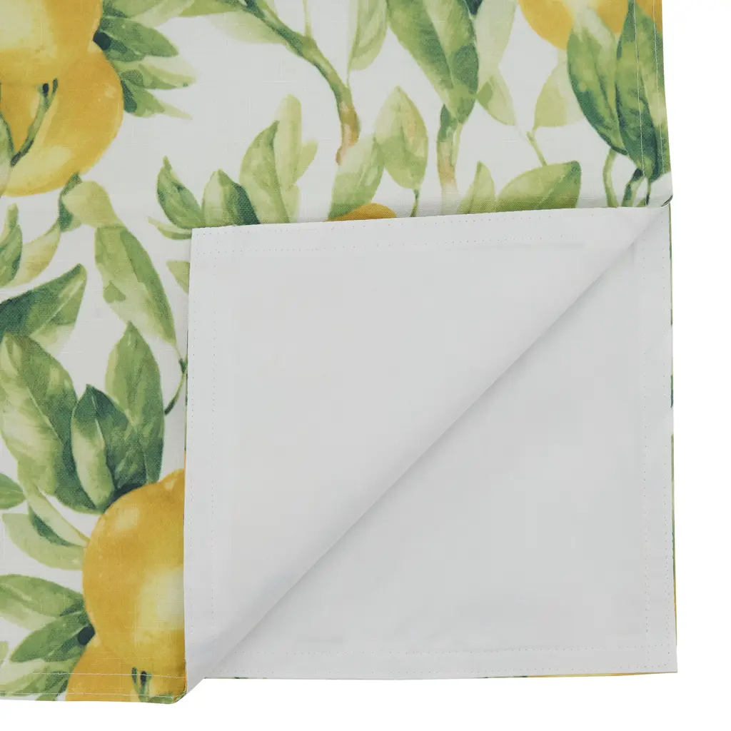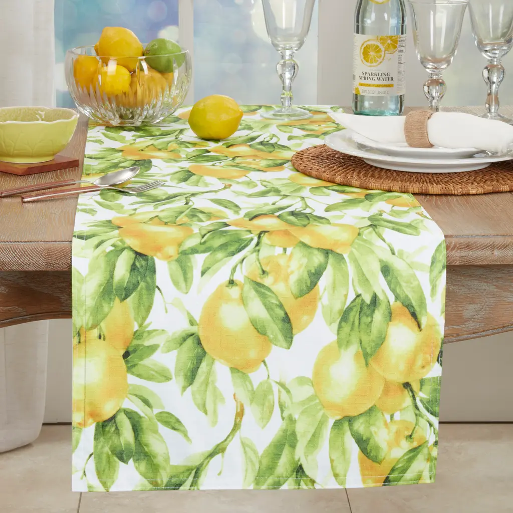 Let this garden-inspired Lemon Print Table Runner be the perfect foundation for your summer table decor! Featuring a large lemon and leaf design, this runner adds a fun burst of color to your dining. Style with silver accents and crisp, white dinnerware for a clean look or add the matching placemats to pull it together.