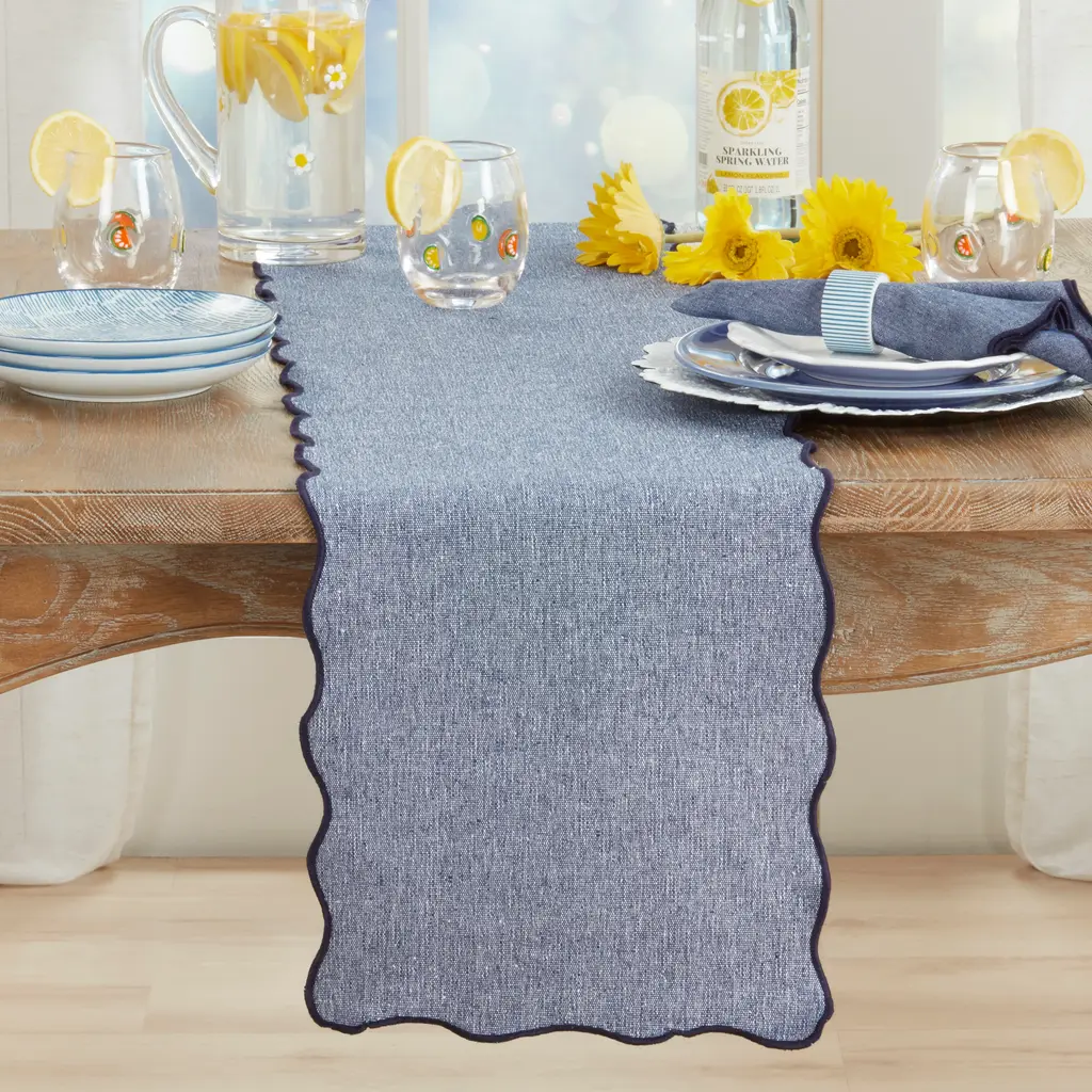 The Recycled Scallop Border Table Runner is designed to complement any setting with style. A great accent for your everyday or seasonal table.