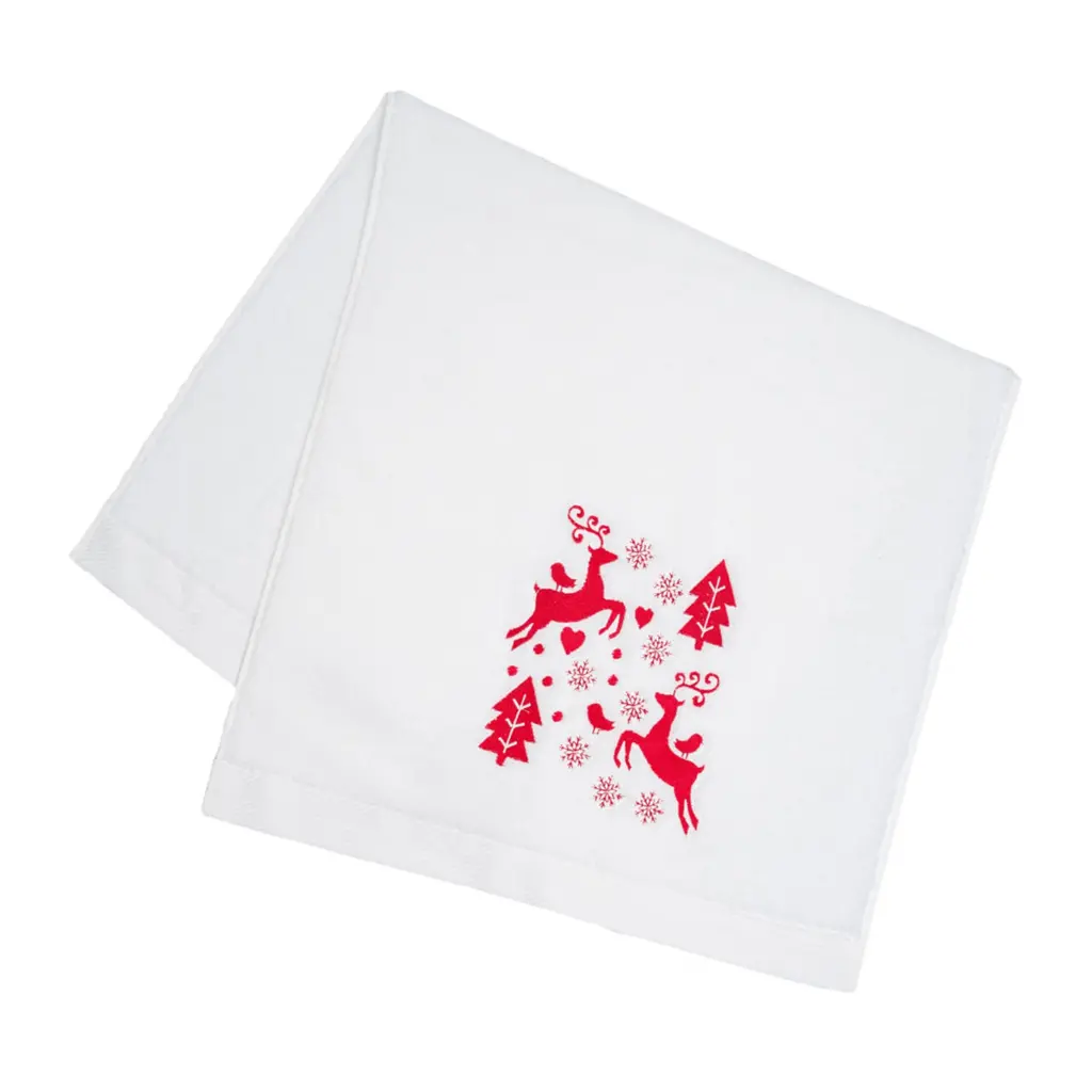 Reindeer With Gifts Embroidered Christmas Table Runner 16 By 36-Inch - 15"x90"