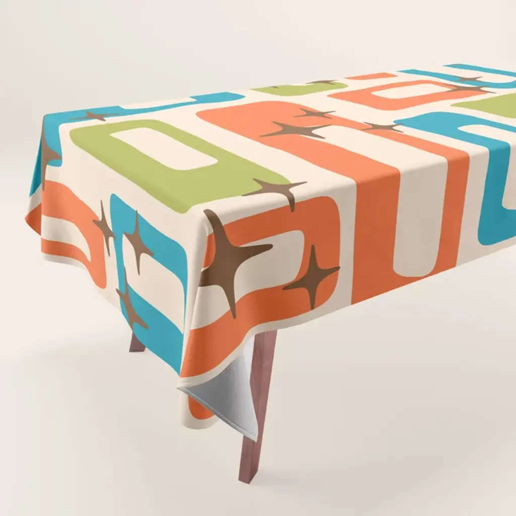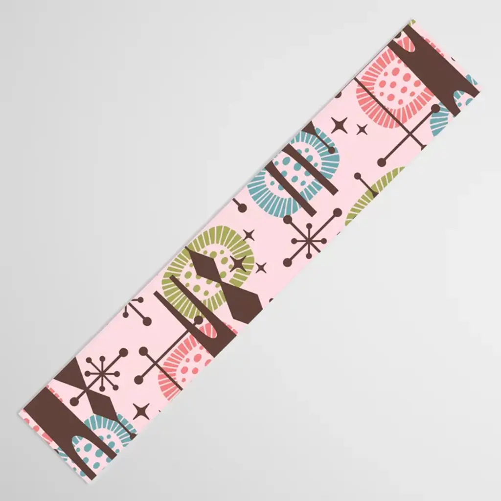 Retro Atomic Mid Century Pattern Pink Green Blue And Brown Table Runner