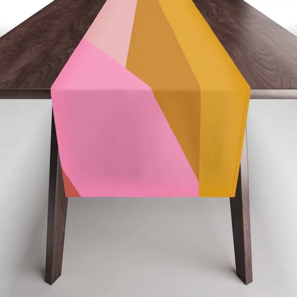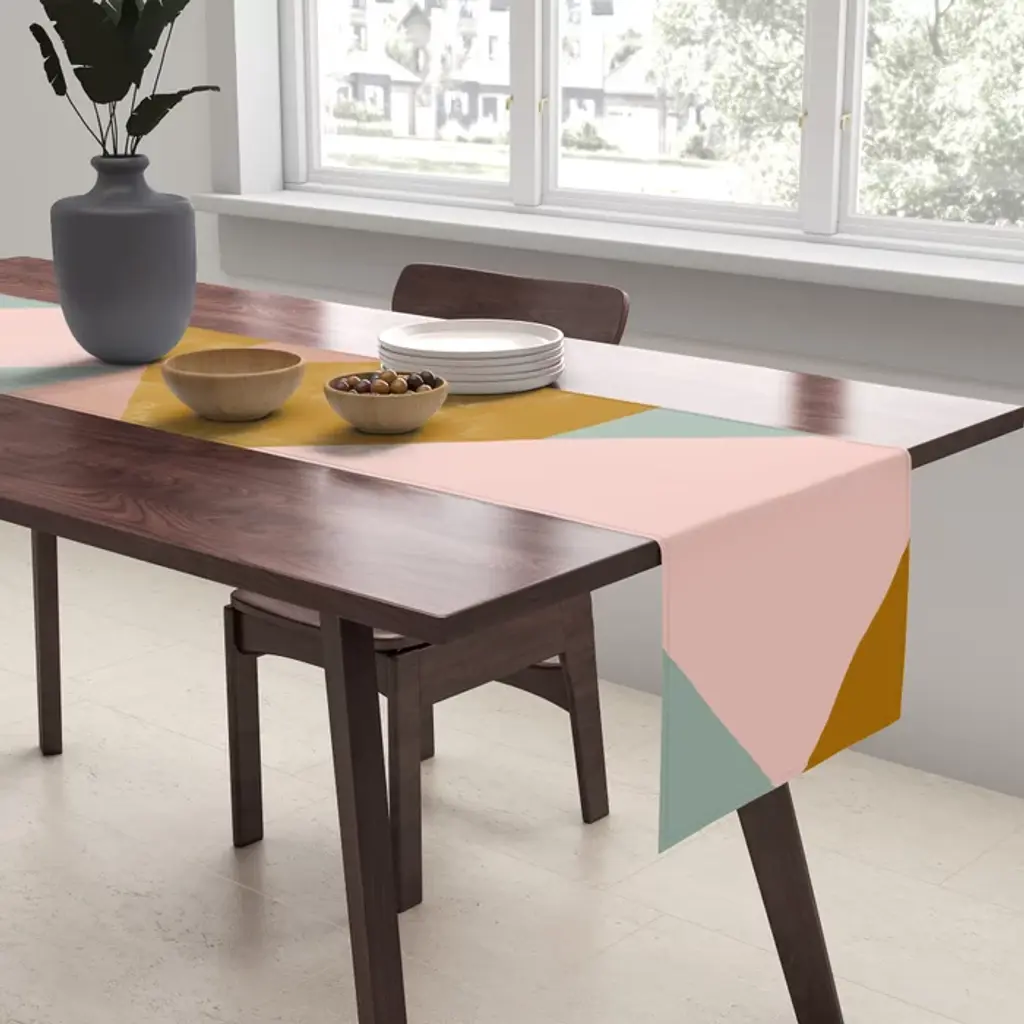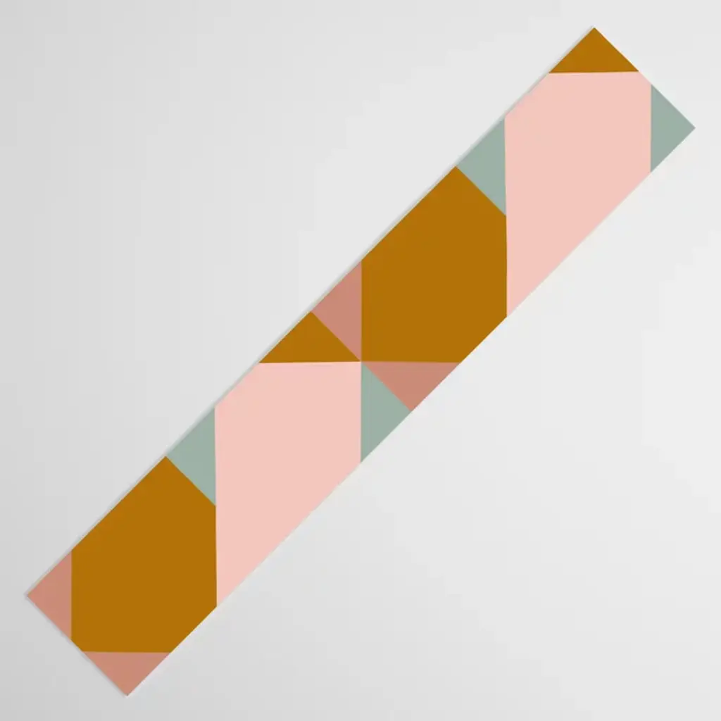 Retro Geometric Triangles In Earthy Pastels Table Runner