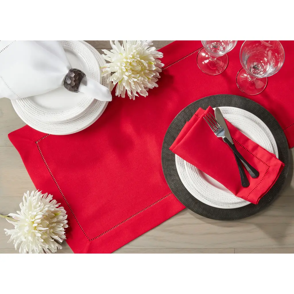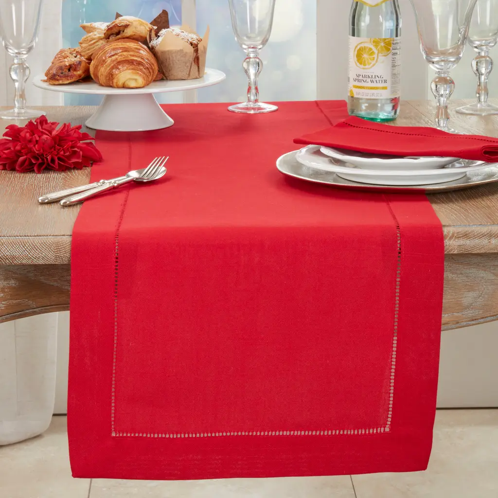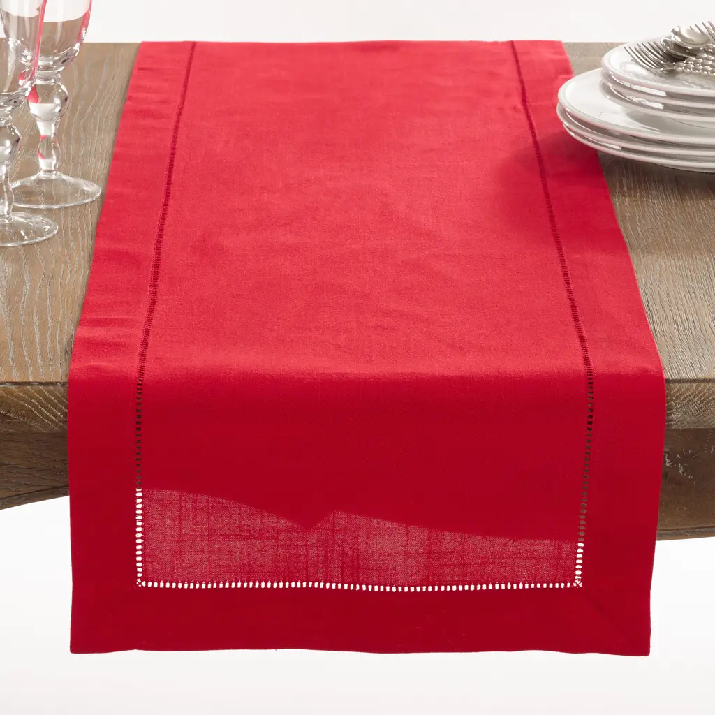 Rochester Collection Red Table Runner With Hemstitched Border - 16"x54"