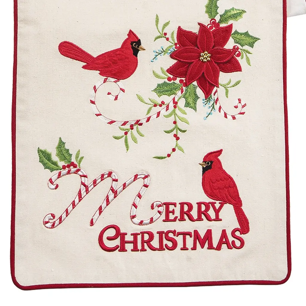 Santa Red Embroidered Cutwork Rectangular Table Runner, 15 By 43 Inch