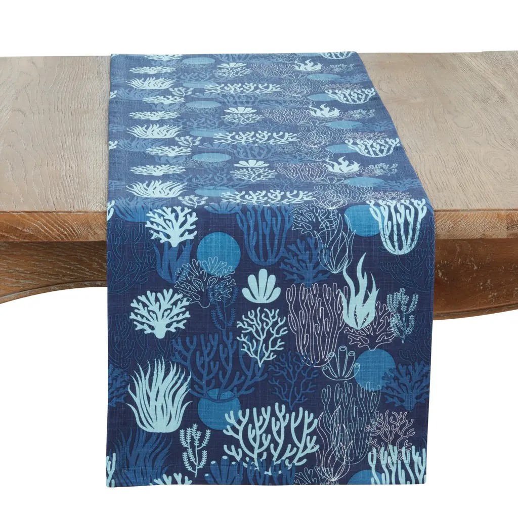 If unique table décor it's what you're after, then you can't miss the mark with this beautiful Sea Design Table Runner. Printed on a dark toned background, the design features sea life accents that instantly calm and relax the mind.Features: