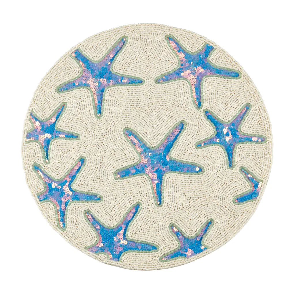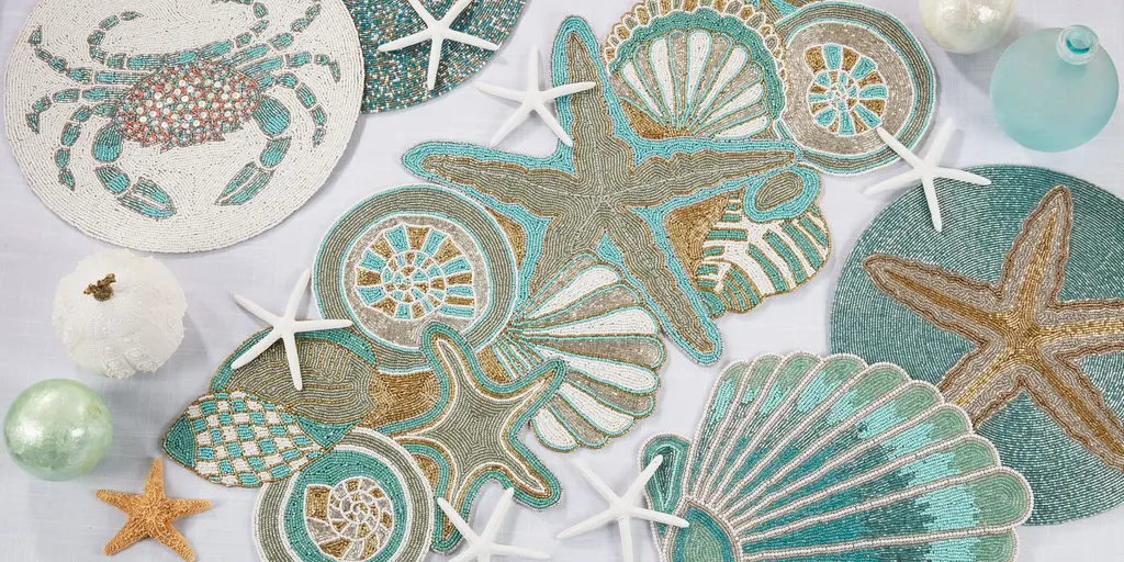 Featuring coastal blues that soothe your senses, as well as an opulent pattern, the Sea Shell Beaded Table Runner is a special addition to any table decor. The coastal-inspired design makes it a clear choice for spring or summer settings. Pair the runner with solid, strong colors for a contrasting effect.