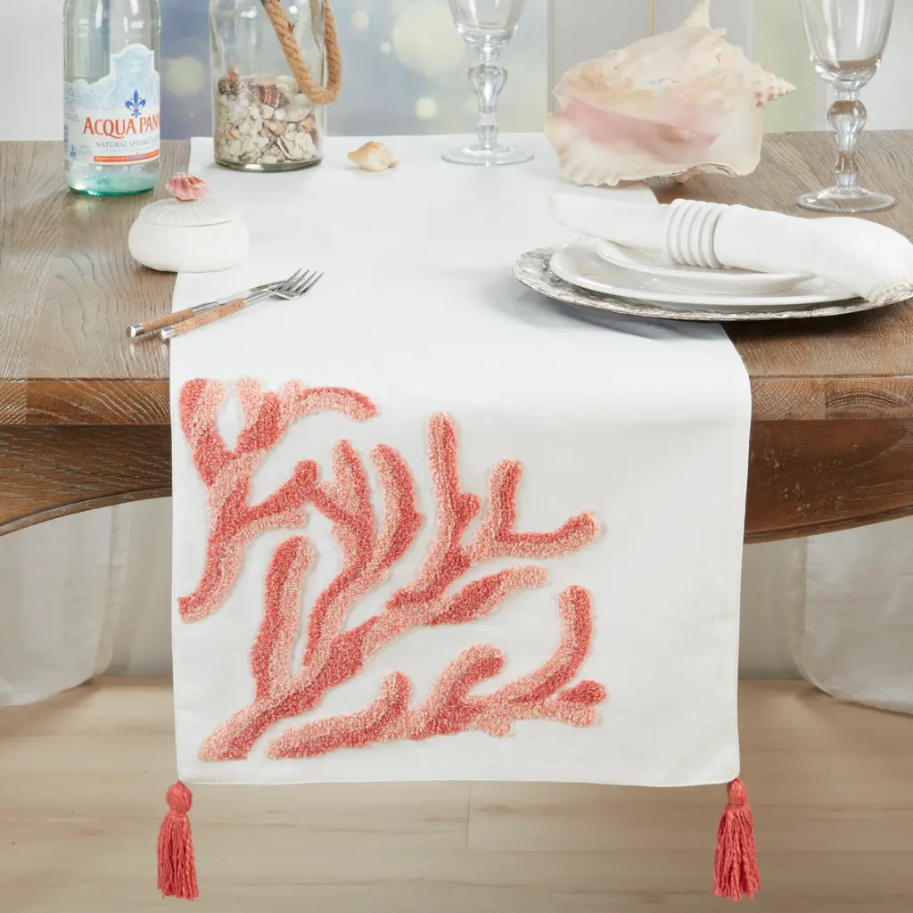Enhance your dining table with the Seaside Embroidered Coral Table Runner. This elegant piece adds texture and style to your setup, making every meal feel like a special occasion. Beautifully crafted to complement a variety of styles and settings, it's a true standout. An ideal choice for gifting or adding a sophisticated flair to your space.