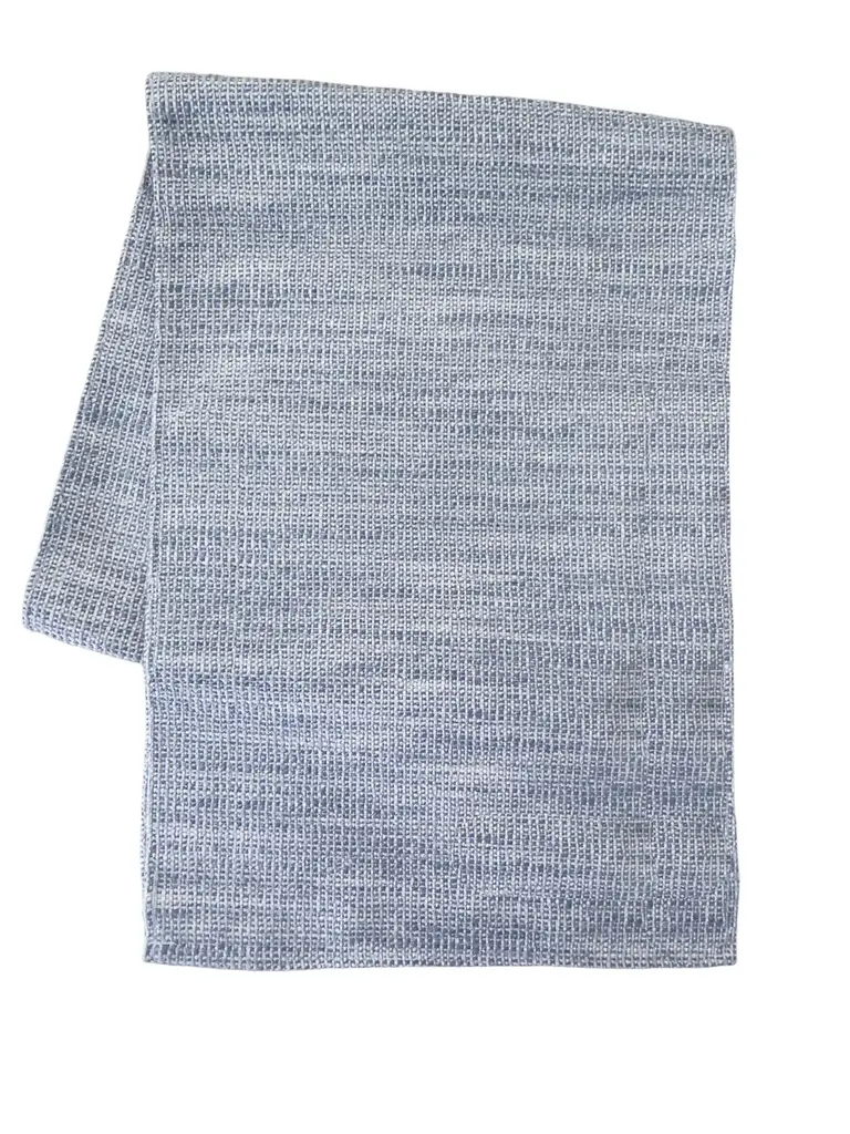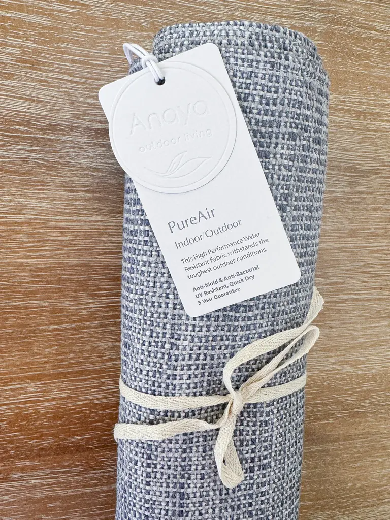 The Seaside Smooth Indigo Indoor Outdoor Table Runner is designed with versatility in mind, ideal for both indoor and outdoor dining settings. Whether it's placed on a wooden dining table indoors or used to enhance a tabletop setting outside, it effortlessly elevates any entertaining arrangement. The Anaya Pure Air Collection features Indoor and Outdoor Runners which are cut and sewn in our Miami, FL facility. Color: Blue. Pattern: Indigo Blue woven pattern with Grey and White Ground color. Size: 14"x72". Fabric: Soft 100% Solution Dyed Acrylic. Wash Instructions: Spot Clean or Machine Wash on Delicate using Cold Water only, Hang to Dry. Made in the USA.