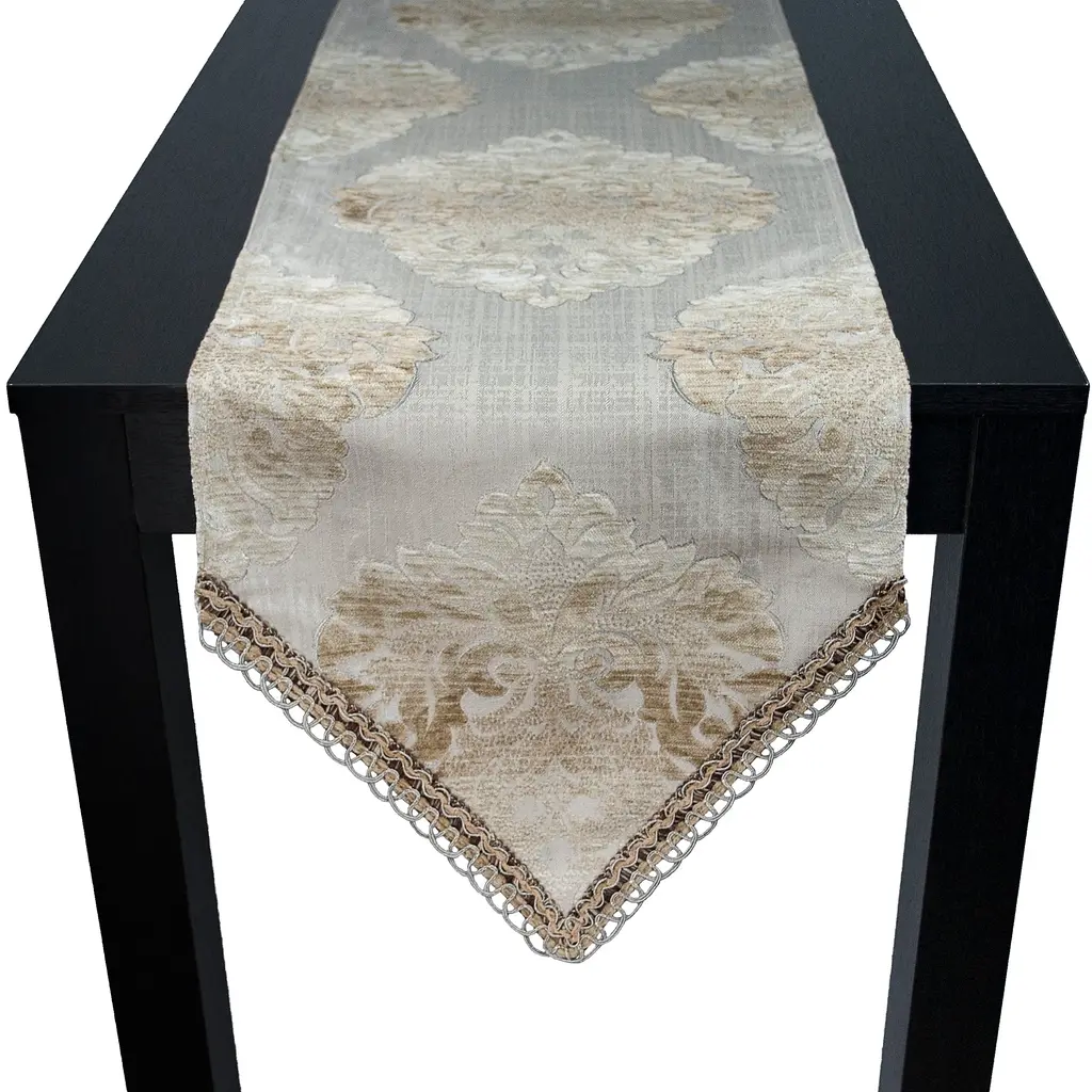 Create a beautiful tablescape and provide lavish look to your decor with this stunning luxurious table runner from Sherry Kline.Beautiful jacquard table runner with a dazzling pattern. This splendid table runner features a Medallion pattern, with its alluring scallop edges and a tassel. Featuring a heavy-polyester imported fabric construction and brings a touch of elegance. This runner is spot clean recommended.The digital images we display have the most accurate color possible. However, due to differences in computer monitors, we cannot be responsible for variations in color between the actual product and your screen.