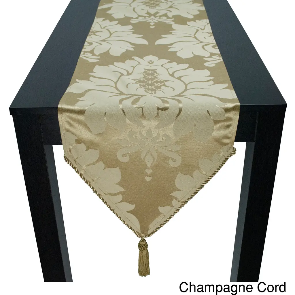Complete your tabletop ensemble with this beautiful luxury table runner from Sherry Kline.A beautiful table runner, this jacquard table runner will add luxurious look to your table. This elegant runner features a pattern of Medallion. Crafted from durable polyester.The table runner comes in 3 different styles. The first variation features a Satin Sheen Gold color with a gimp edging and a tassel to complete its luxurious look. The second variation features a Champagne color with two different edge style, the first one comes with a gimp edge and a tassel and the second features a corded edging and a tassel.This accessory is available in three different sizes so you can be sure to get the one that fits your preferred style.This runner is easily spot cleaned for an easy and convenient maintenance. Size Options: