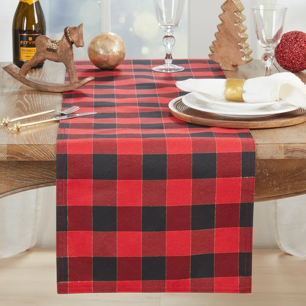 Add a touch of sparkle to your table with the Shimmer Stitch Plaid Table Runner. Featuring a classic plaid design interwoven with shimmering metallic threads, this runner brings effortless elegance to any dining setting. Perfect for holidays, celebrations, or everyday charm, it's a versatile and stylish addition to your decor.