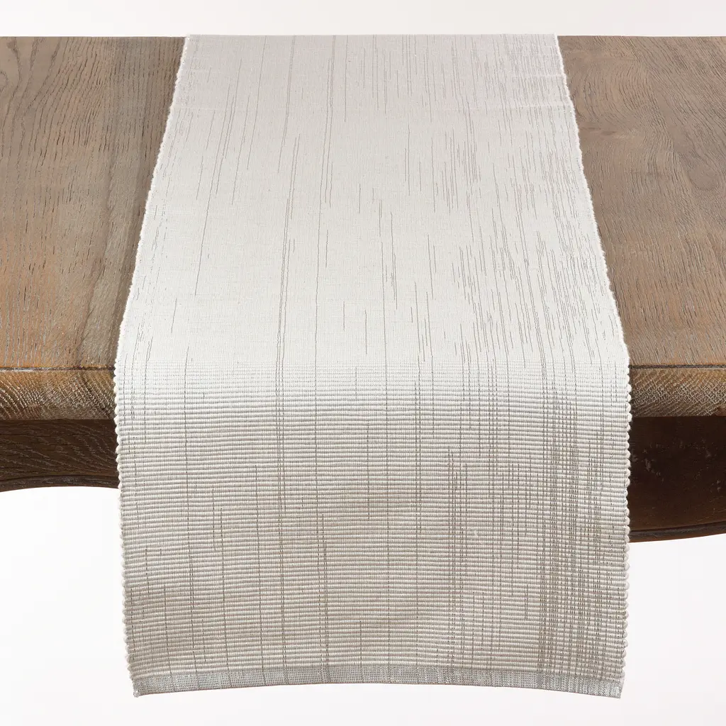 Dazzle guests with this shimmering ribbed table runner. Woven with cotton, the runner adds a hint of shimmer to your tablescape and layers beautifully with printed napkins and placemats, chic flatware and festive tabletop decor.Features: