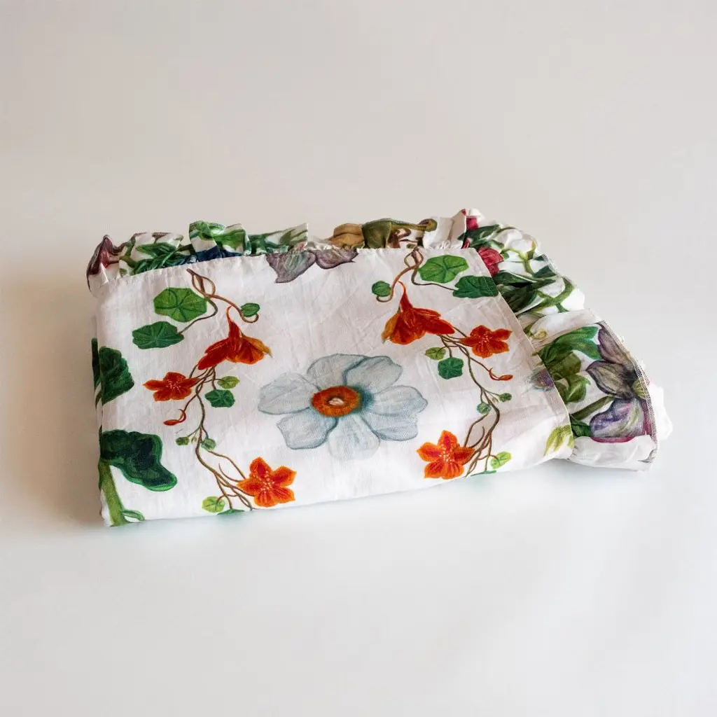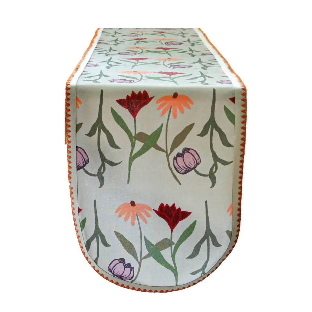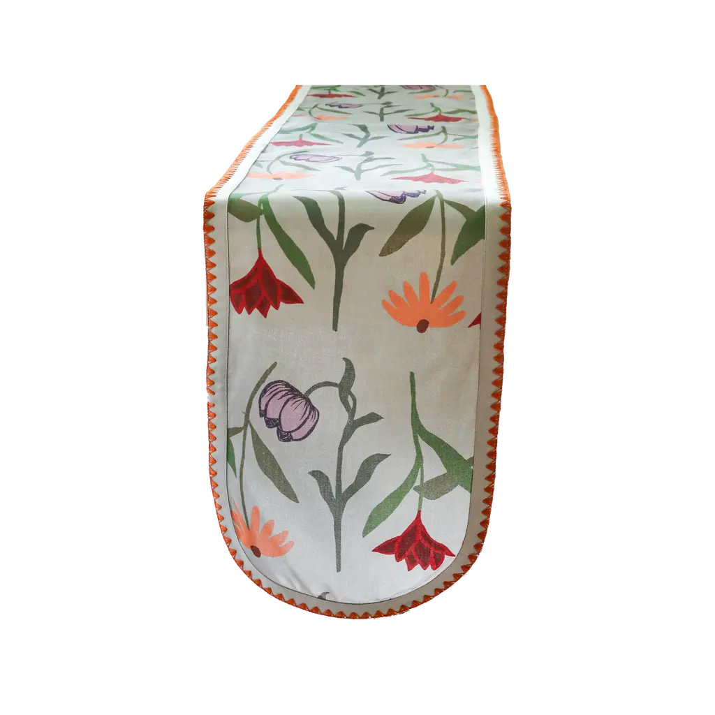 Table runner with an offset seam in the unique Blumen Orange print. Made with our signature 100% Heavy Organic Cotton.Available in two sizes: Small 12 x 78" Large 16 x 136" 100% Organic Heavy CottonPrinted with Low Impact DyesEthically made in India by our partners at Five P Venture