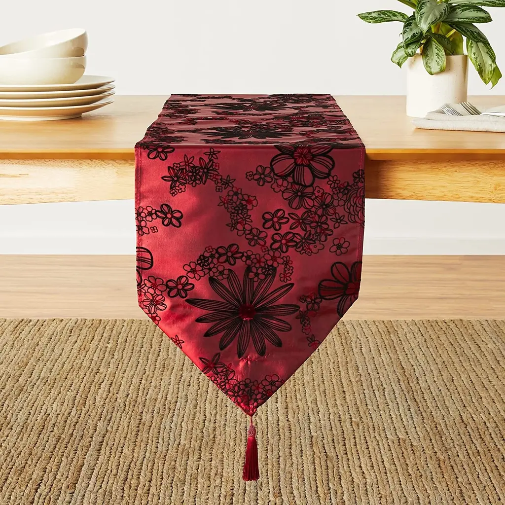 Small Table Runner Golden Orange And Fuchsia With A Bold Flower Print