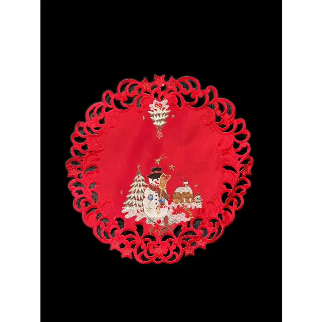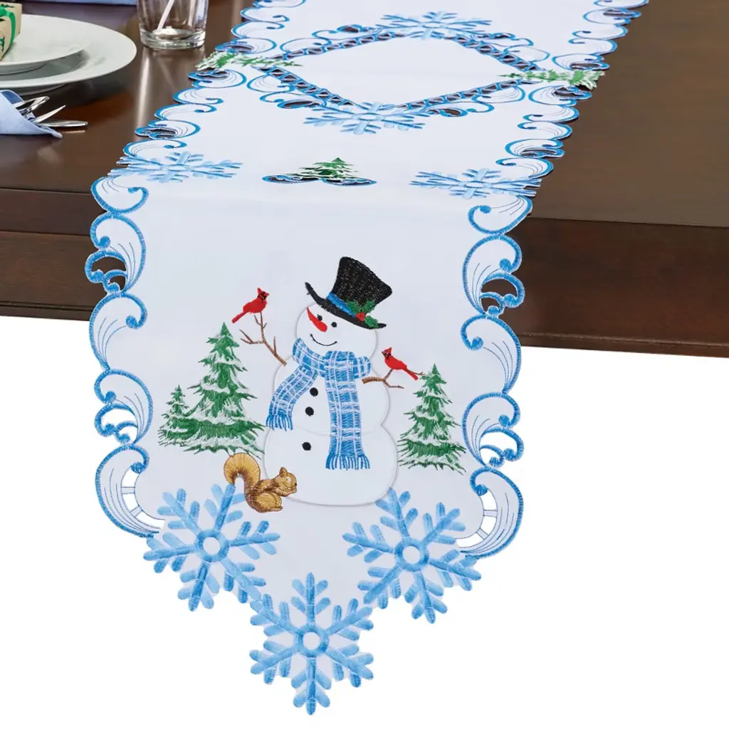 Snow Man Embroidered Cutwork Rectangular Table Runner, 15 By 43 Inch