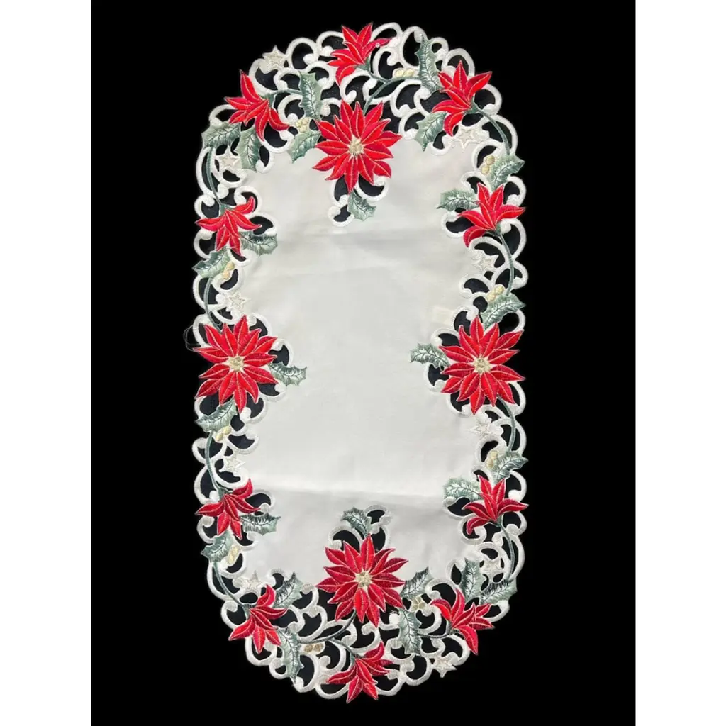 Embroidered rendered in intricate cutwork with details and vibrant colors table linens collection. A great in-style accent to all formal and casual dinners for cozy and warm! Our unique designs and rich details are a must have home fashion with a touch of elegant sense. Keep up with different occasions and ever changing colors of the holidays and seasons by adding a stunning piece to tie your existing interior decor together, or simply use it for an easy care focal point for parties and events. Our embroidered table linen home Fashions and creations will complete the table decor with class! The fabric is Machine Wash and water resistant for easy case. Simply roll and lay flat for storage.