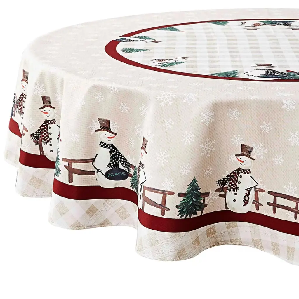 The Snowman Winterland Holiday Snowflake printed table runner brings a festive, nostalgic look to your table setting throughout the Christmas and holiday season. Holiday inspired, decorated with snowmen wearing black hats plaid scarves, red cardinals, snow covered green pine trees, and star shaped snowflakes. Features a soft white ground with a classic red bordered design. Excellent for special occasions, events, parties, family gatherings and everyday use during the holiday season. Soft and durable fabric can be ironed to release stubborn creases and make your table runner wrinkle free. Hemmed edge adds a finished look and prevents wear and tear. Table runner measures 13x70. 100% Polyester. Easy care, machine washable. Coordinate to Snowman Winterland Holiday Snowflake tablecloth, napkins and placemats to complete the look.