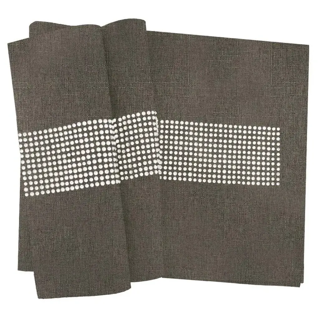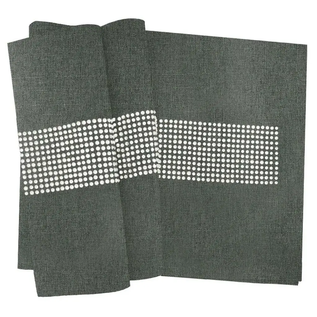This table runner utilizes the same fabric, design, and color options of the corresponding placemat to complete the look. These table runners are set with crystal rhinestones are also machine washable. Available in several sizes.