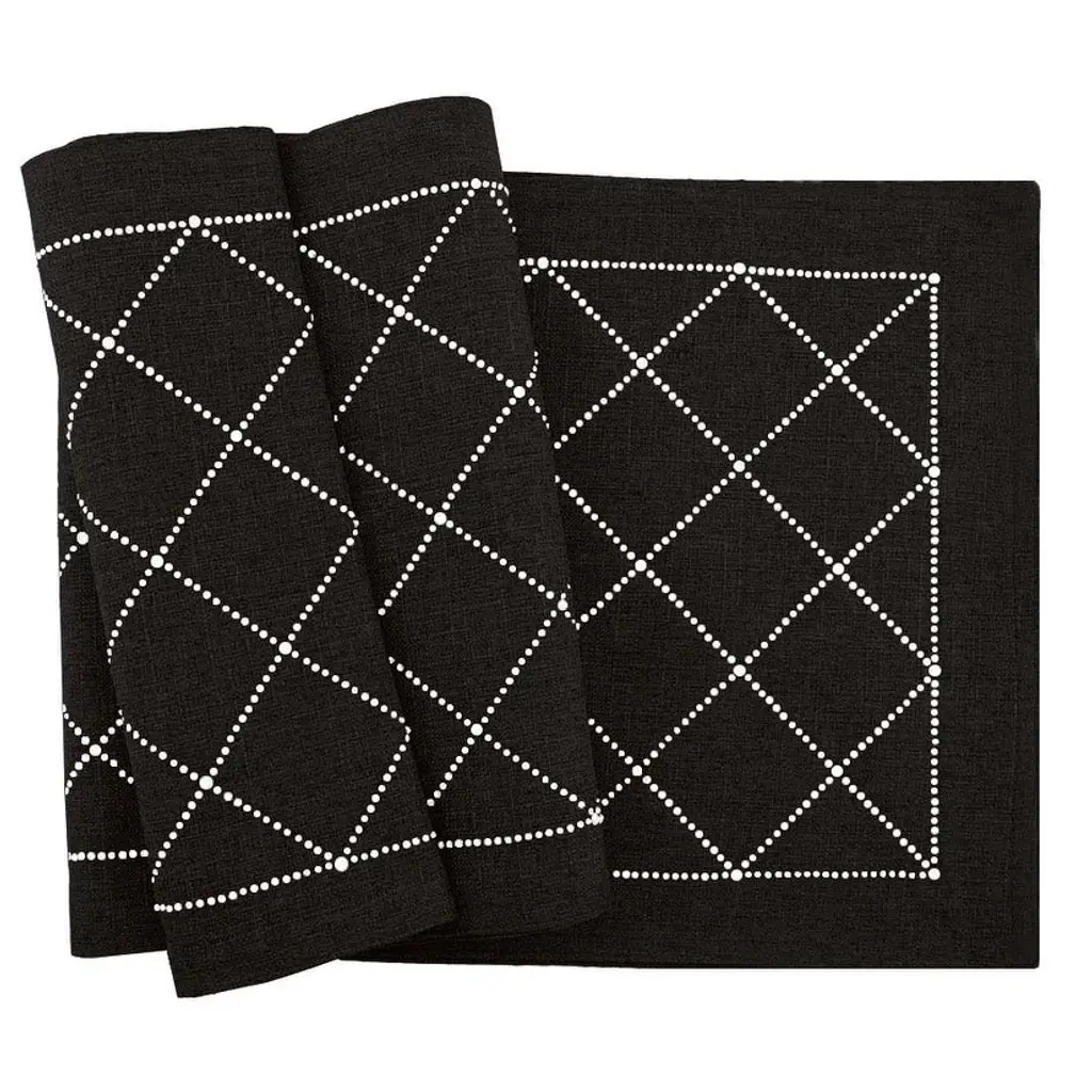 This table runner utilizes the same fabric, design, and color options of the corresponding placemat to complete the look. These table runners are set with crystal rhinestones are also machine washable. Available in several sizes.