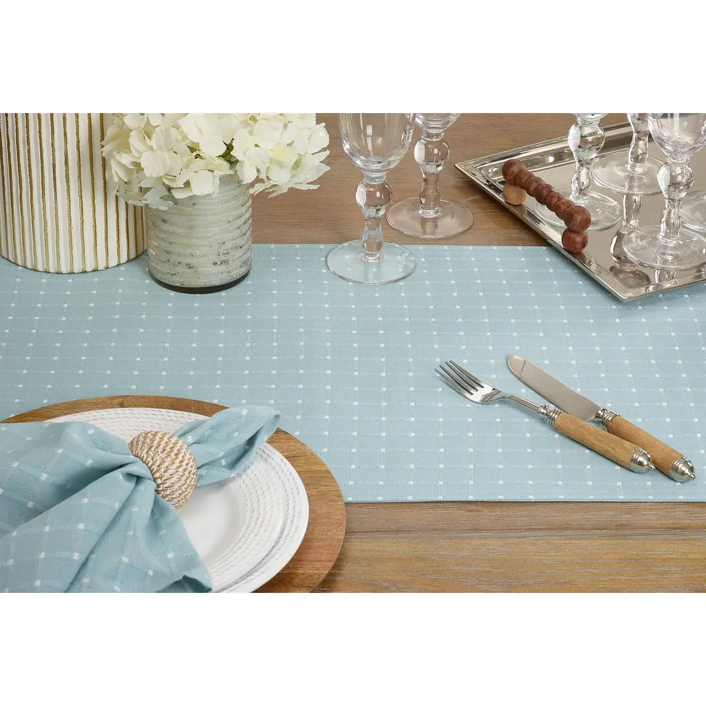 Square Stitched Dotted Table Runner - Aqua - 16"x72"