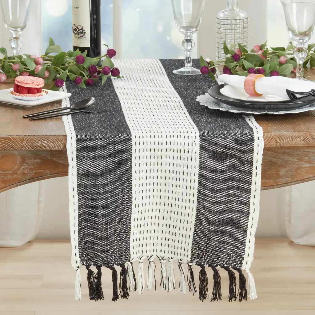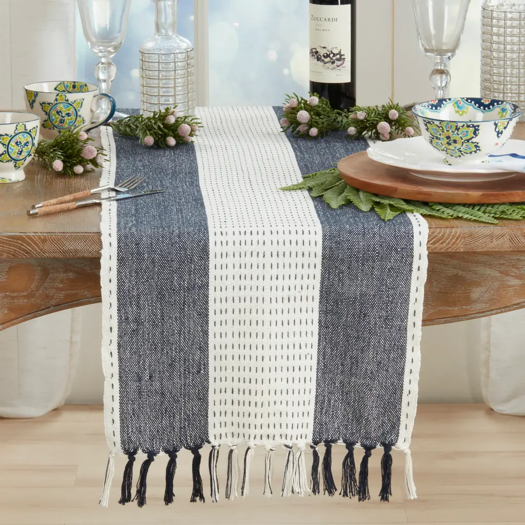 The Stitched Banded Table Runner is designed to complement any setting with style. A great accent for your everyday or seasonal table.