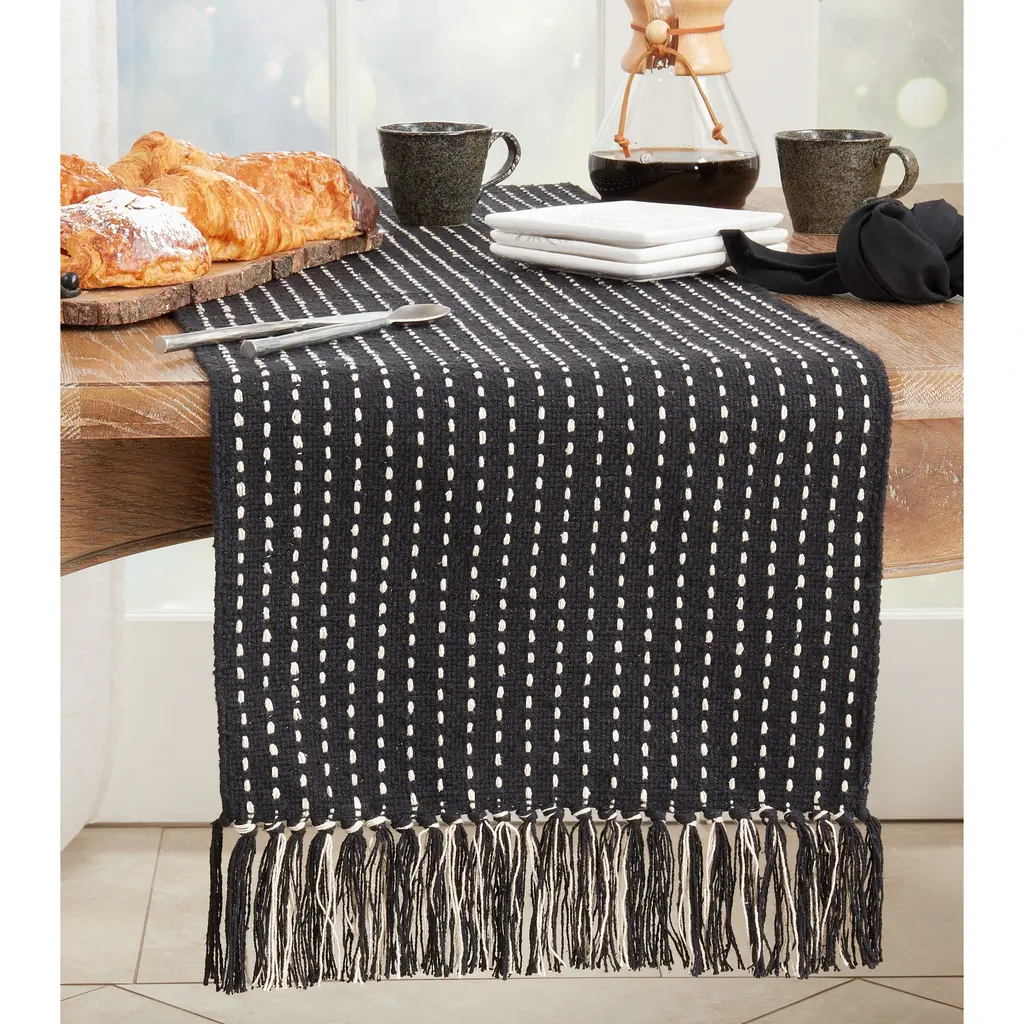 Stitched Design Fringe Table Runner - 16"x72" - 16"x72"