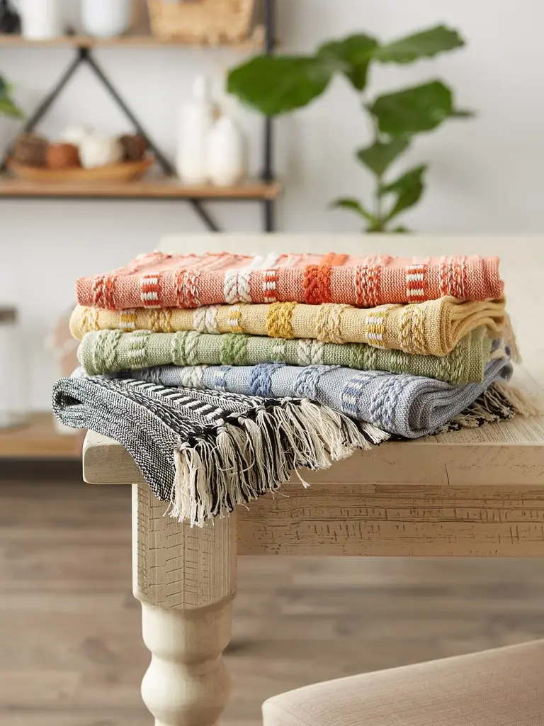 DII offers a full collection of trend-based designs for all seasons. Incorporating the hottest colors and themes, DII brings you a fresh, innovative line of kitchen products, tabletop, gifts, and home decor for every season, every holiday and everyone. 15x72-inch table runner is made of 100-percent cotton and can seat 6-8 people Machine wash cold with like colors, do not use bleach or fabric softeners, tumble dry low, do not iron, wash before first use Like a favorite knit sweater, the runner has lots of texture and is full of detail, fringed edges have a casual look that works with any style Perfect for everyday use, holidays, catering, special occasions, dinners, brunches, family gathering, and more Use a table runner as a colorful centerpeice this while protecting your table's surface from hot pans, scratches, and spills DII offers delightful Kitchen Linens including dishtowels, dish cloths, aprons, potholders and oven mitts.
