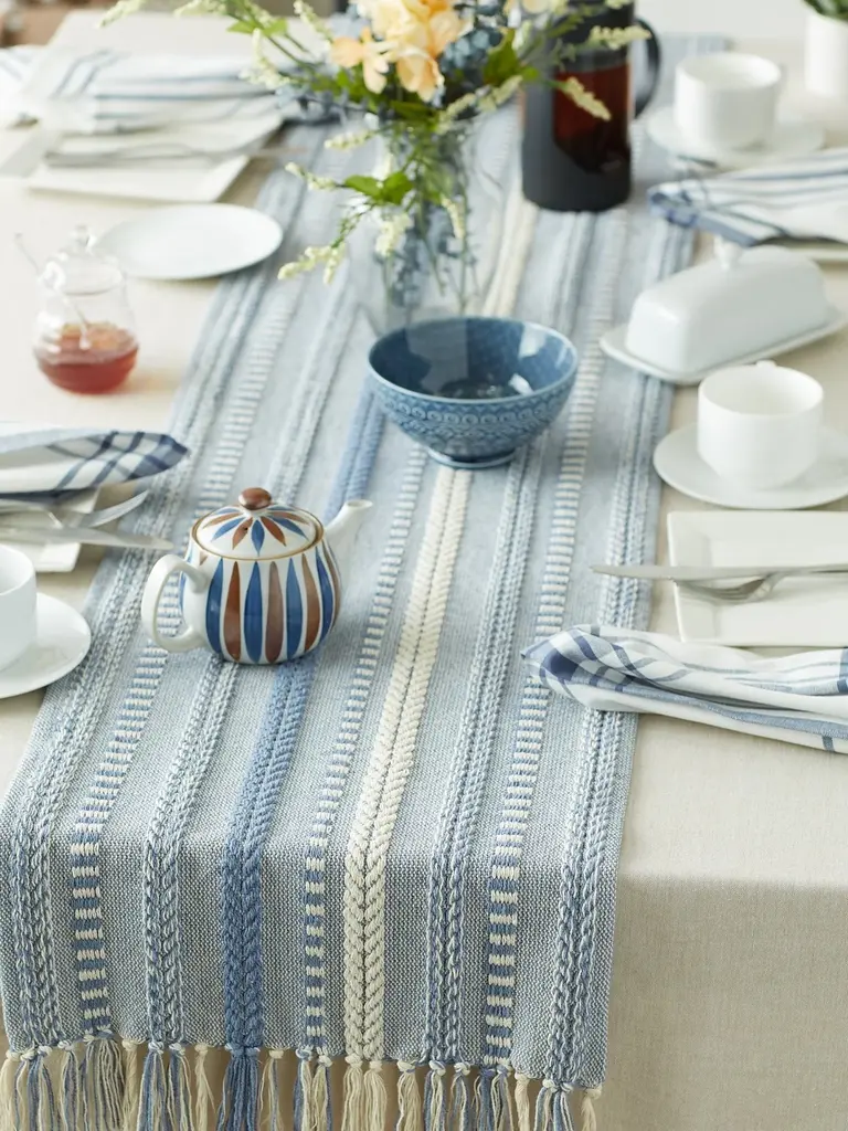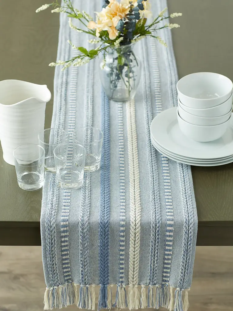 Stonewash Blue Braided Stripe Table Runner 15x108