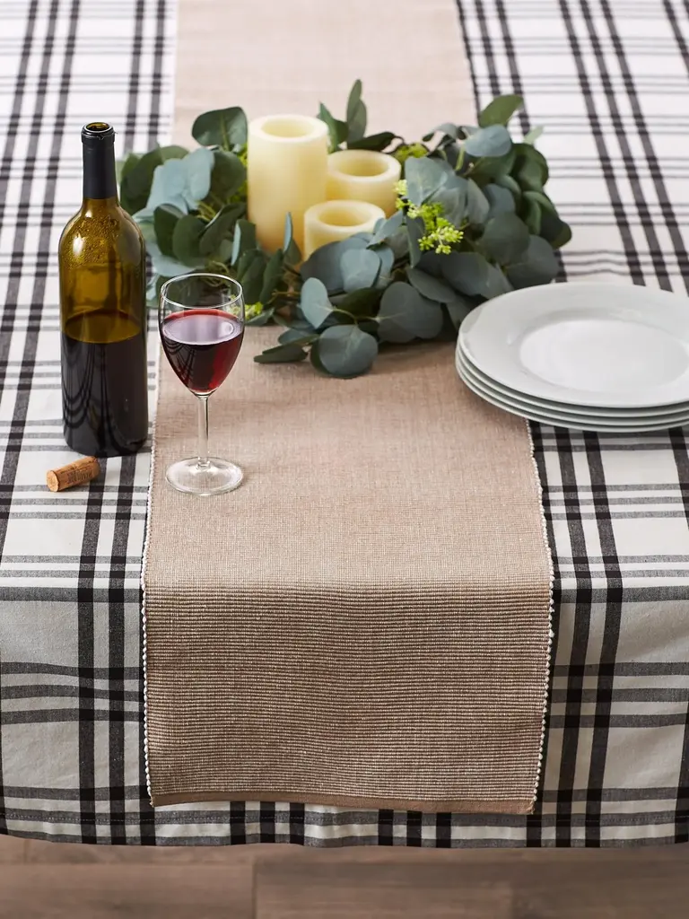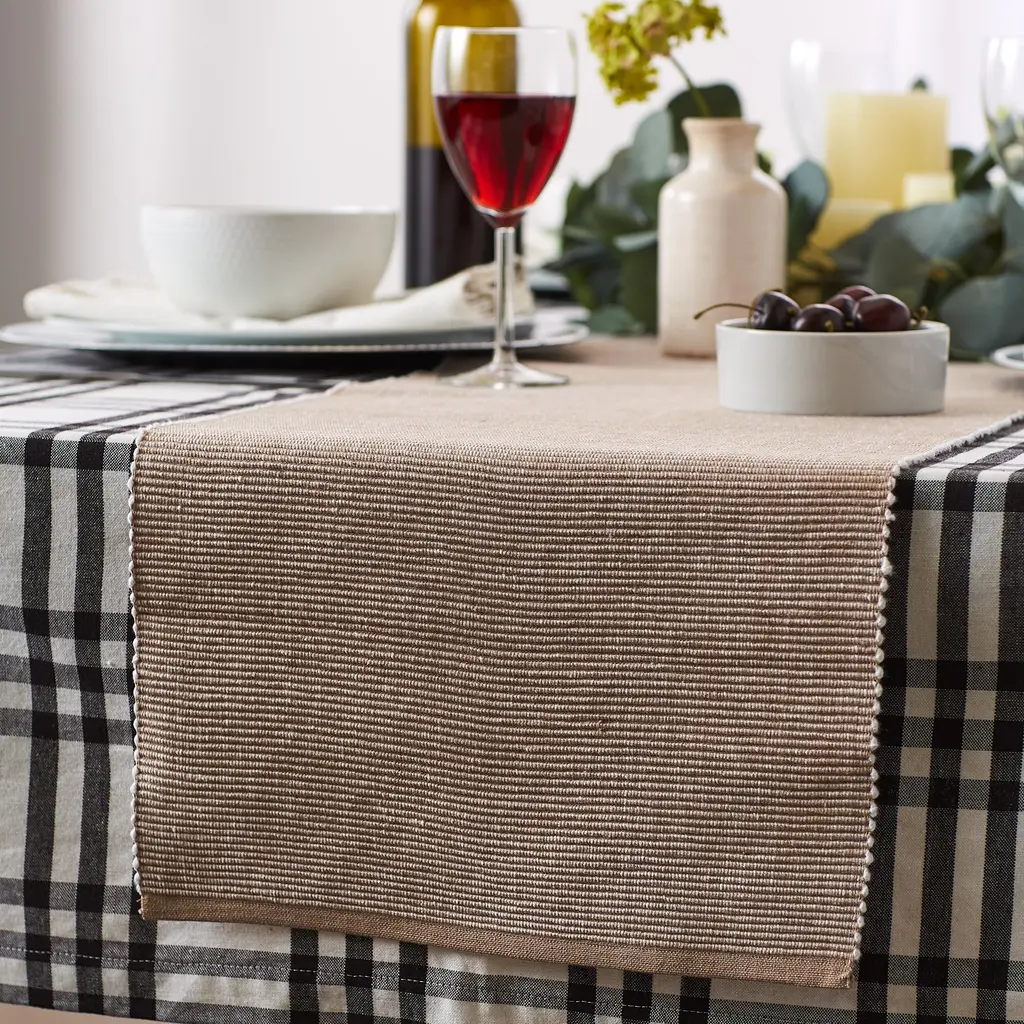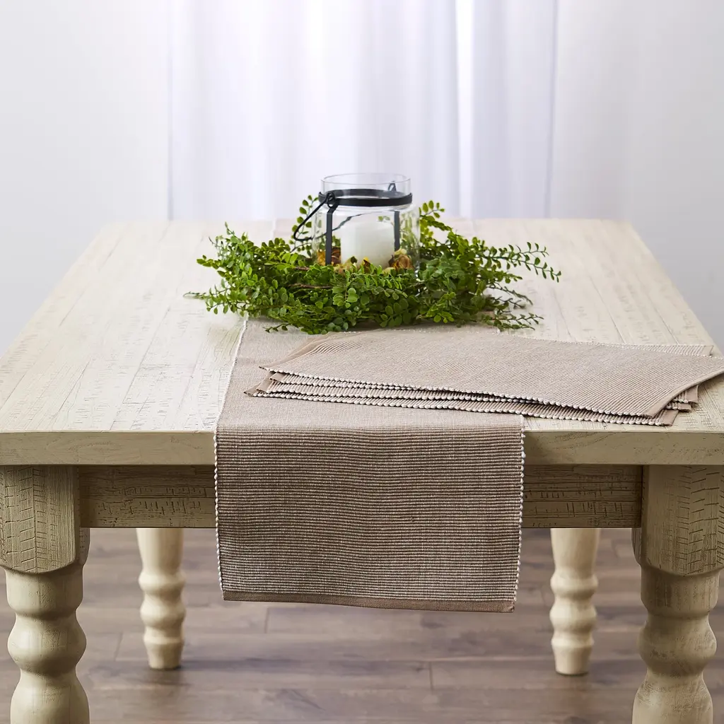 Stone/white 2-Tone Ribbed Table Runner 13x72