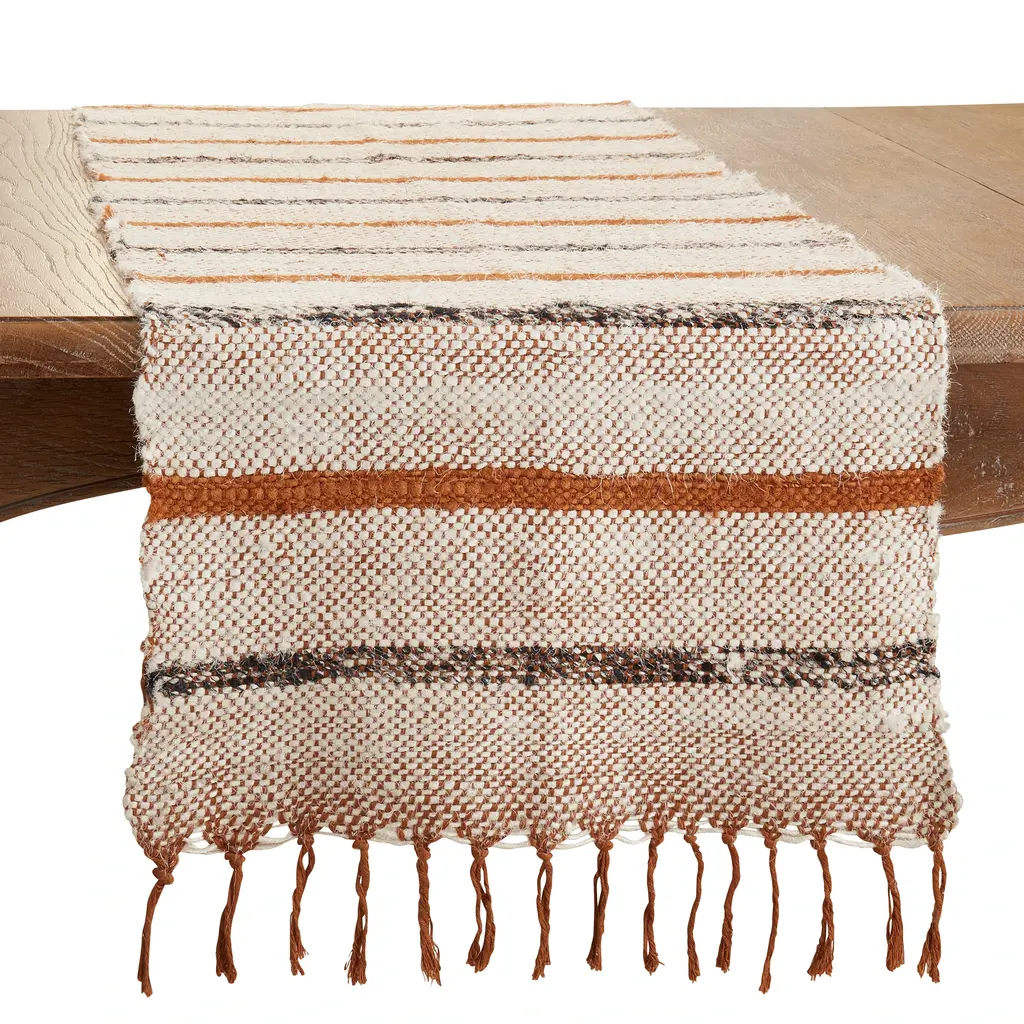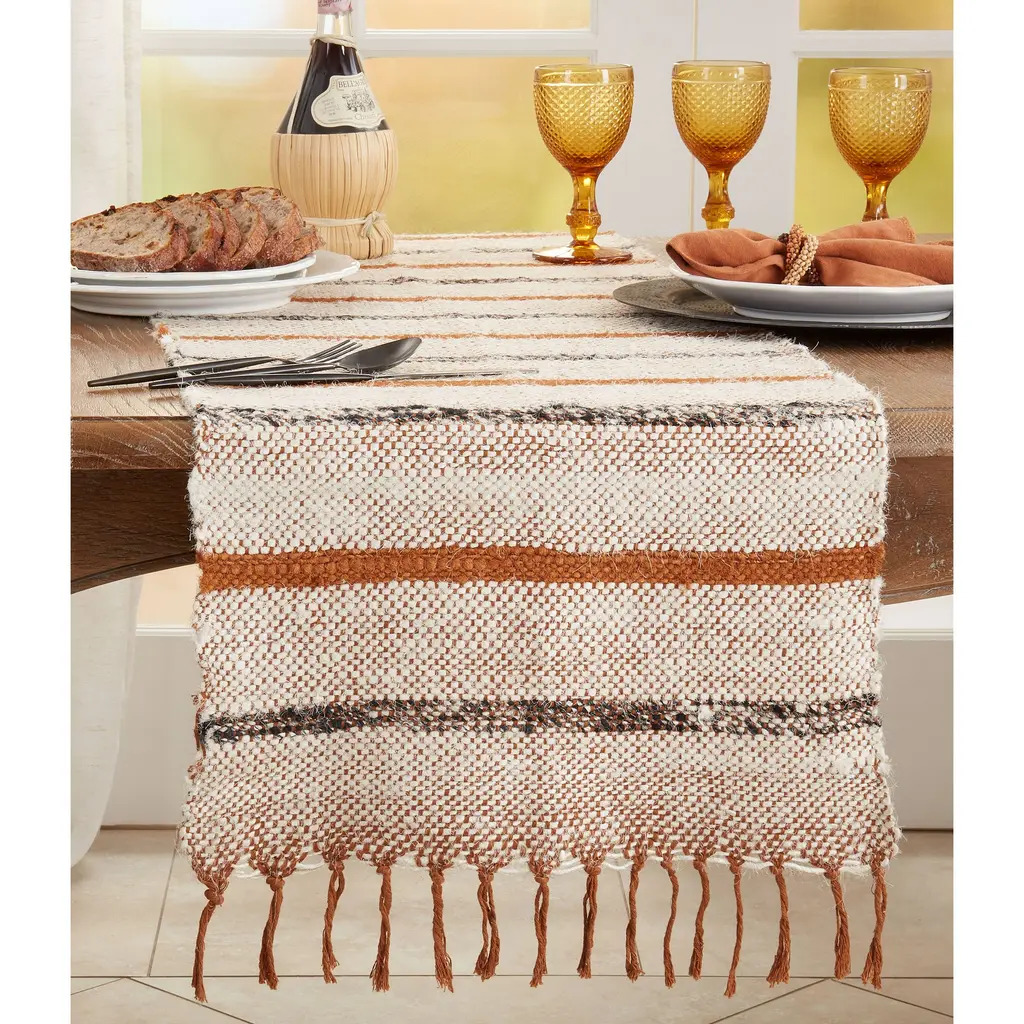 Bring texture, warmth and natural color to your table décor with this jazzy Striped Design Table Runner. The perfect backdrop for everyday meals or casual entertainment, this cotton runner helps set a stylish tabletop. It's easy to pair with solid colors within the same neutral palette or darker tones for a contrasting effect.Features: