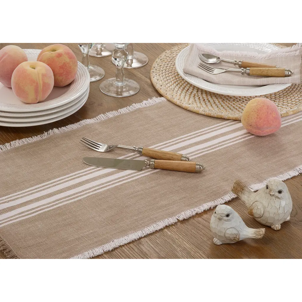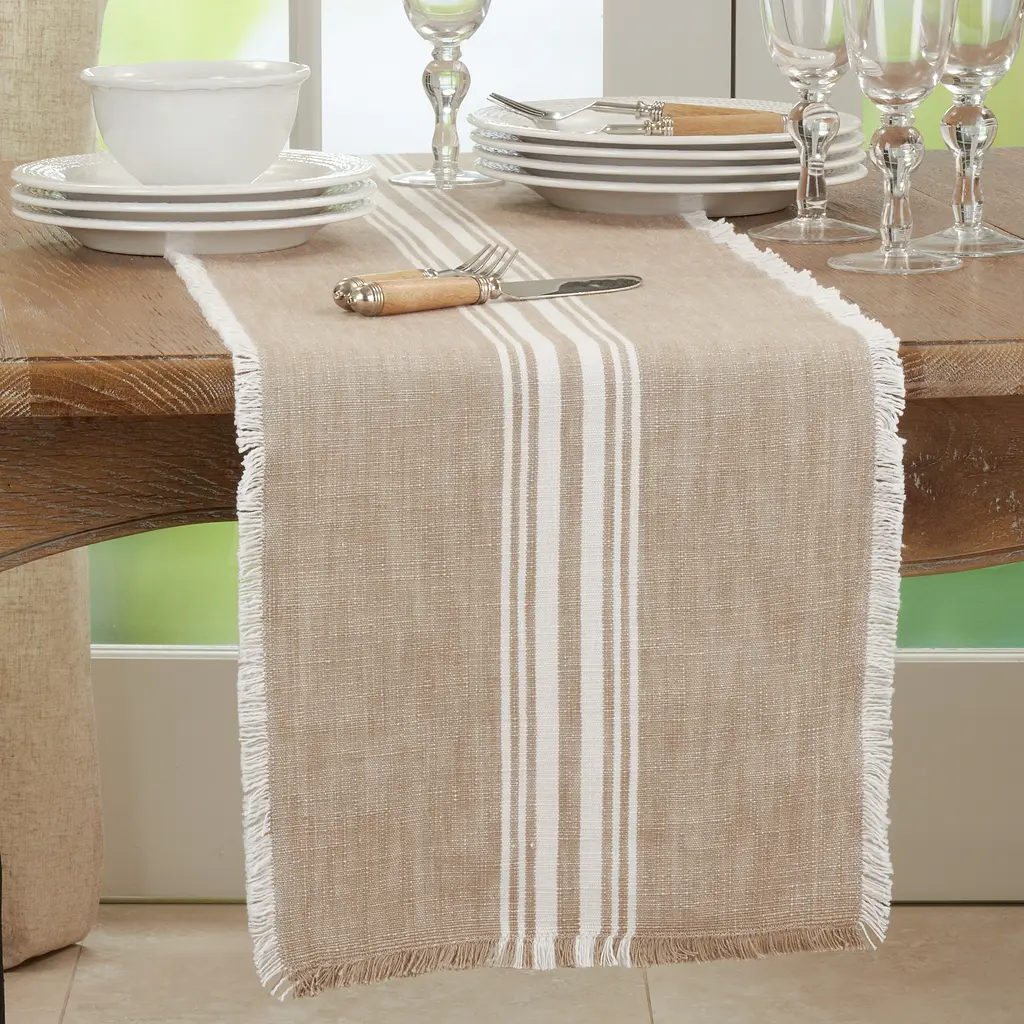 Striped Table Runner With Fringe Design - 13"x72" - Natural