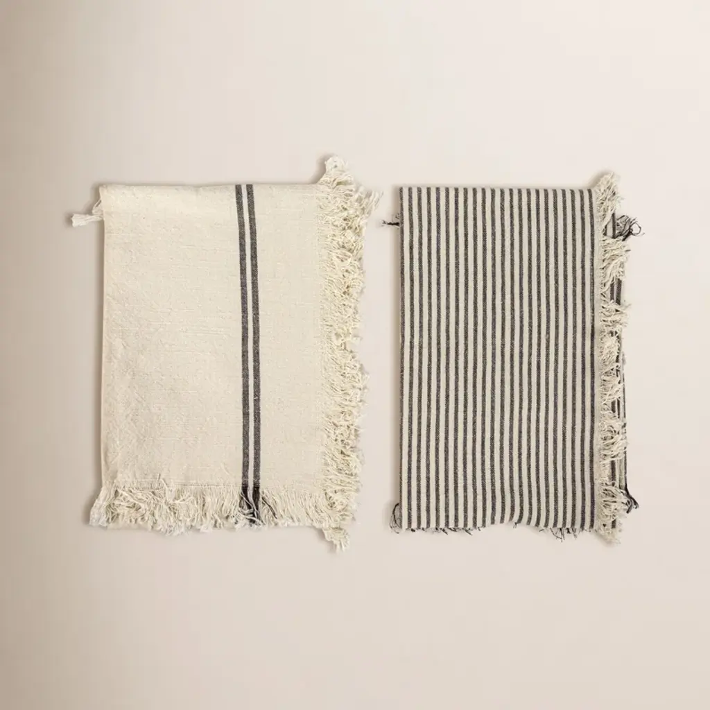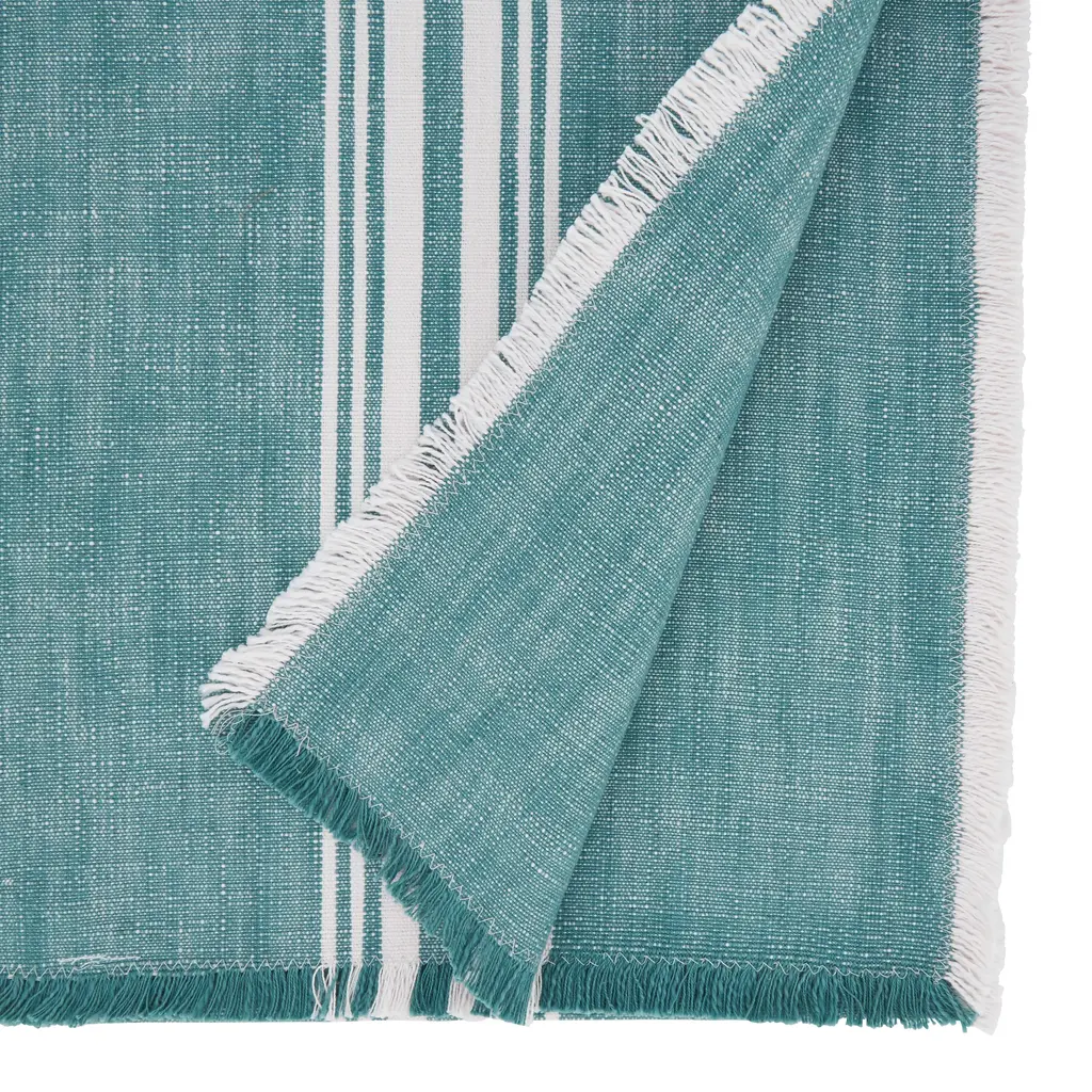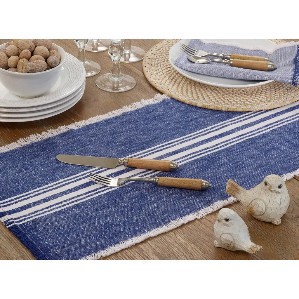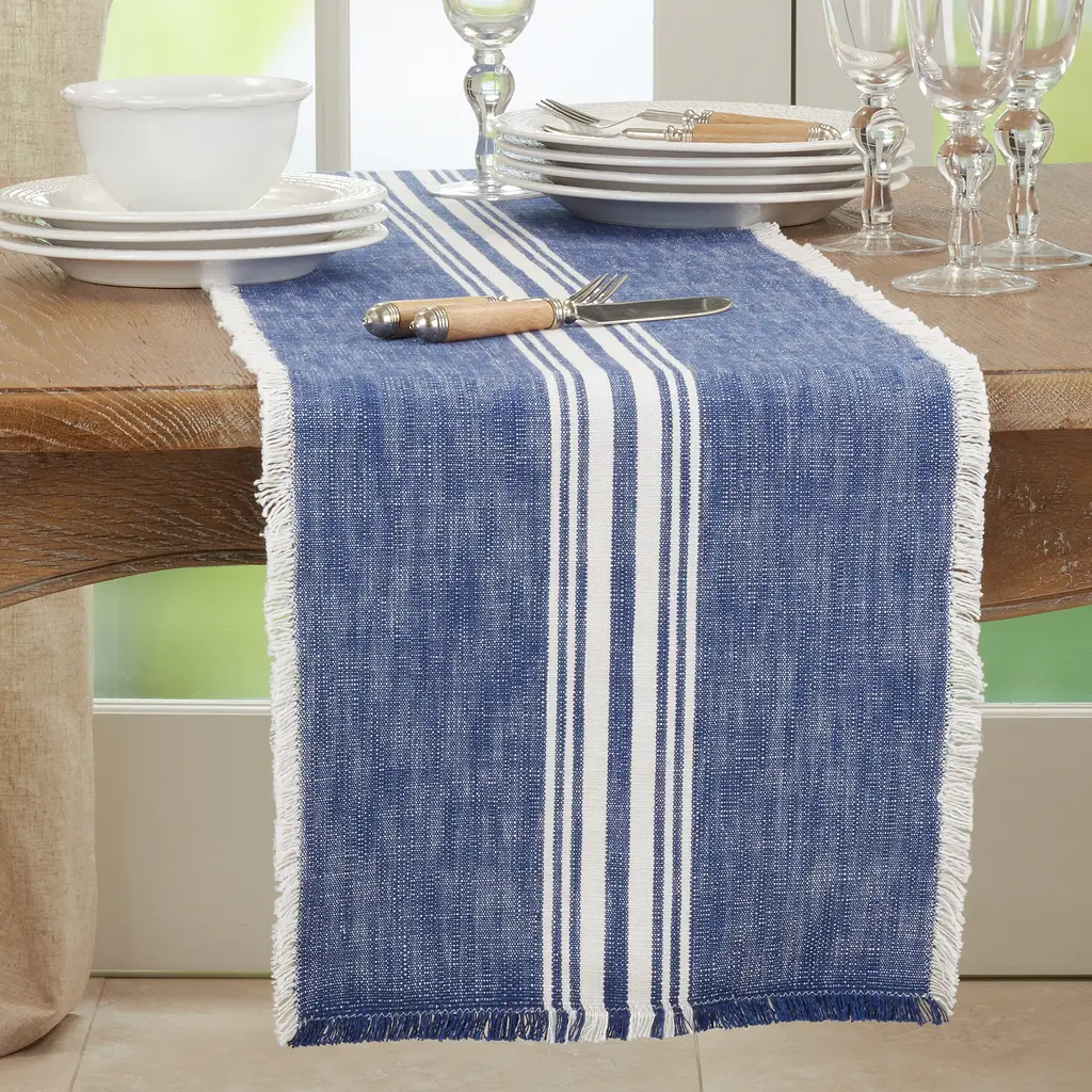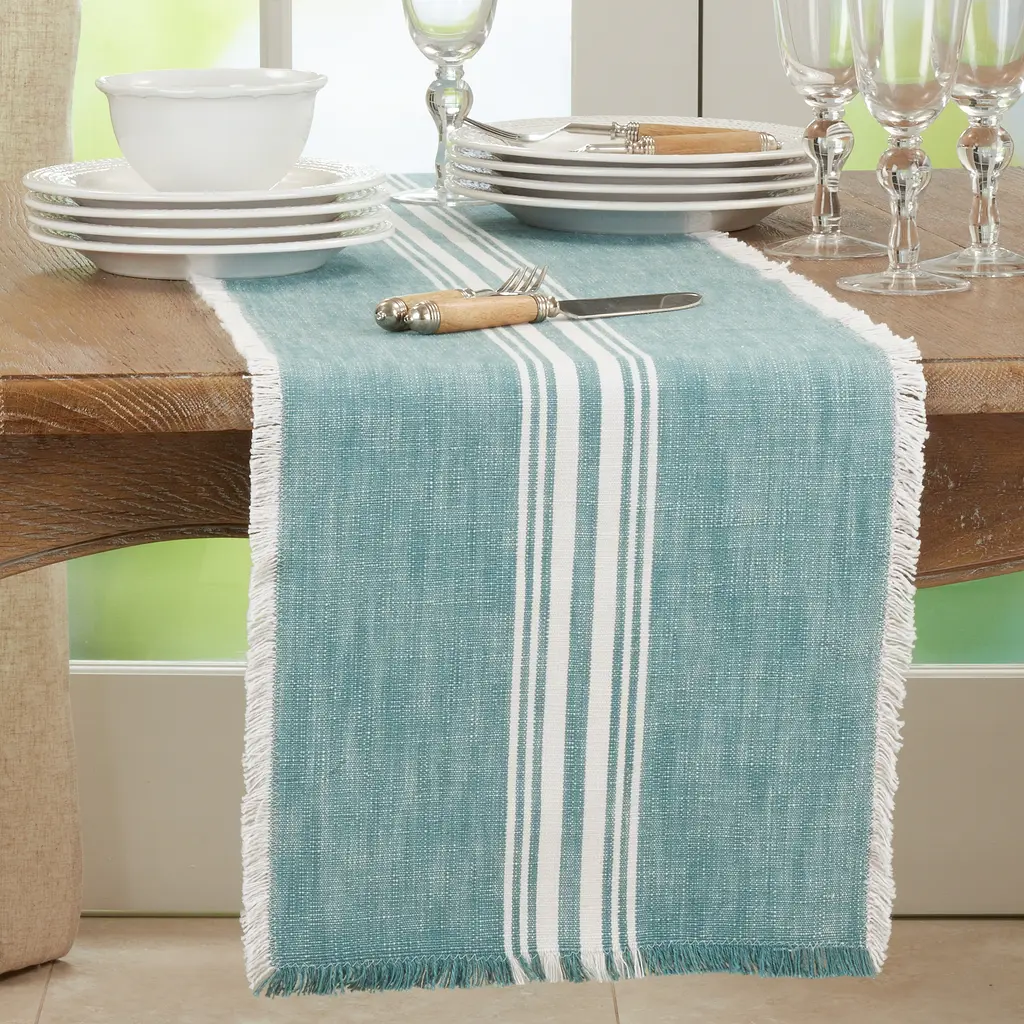 The Striped Fringe Table Runner is the perfect backdrop for everyday meals and casual entertaining. It's made with 100% cotton, which brings a natural look to the table, and features a fringed design that adds a homey feel. It's very easy to pair with solid placemats or chargers within the same color palette.Features: