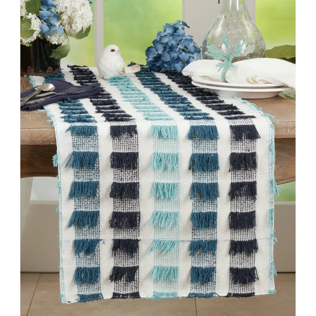 Striped Table Runner With Fringe Design - Blue - 16"x72"