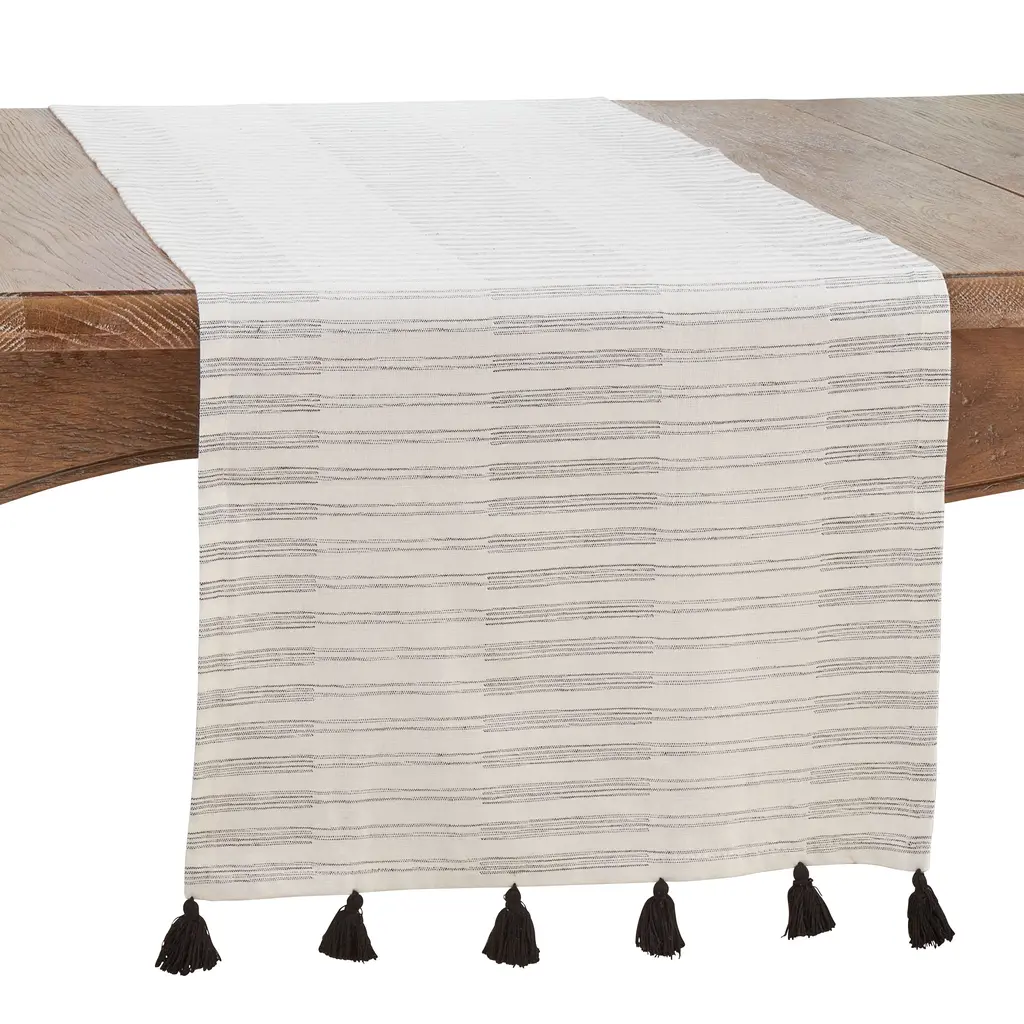 The Striped Tassel Design Table Runner is perfect for everyday use, as well as casual entertaining, being easy to dress up and down depending on the occasion. It's made with 100% quality cotton, which gives it great durability. The black and white color combo adds a classical note and makes it easy to pair.Features: