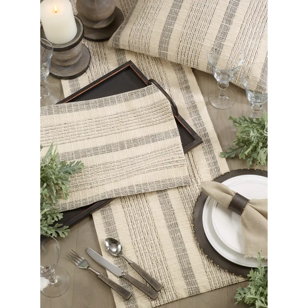 No matter the occasion, add a stylish, rustic touch to your table with this beautiful woven striped table runner. Made with 100% cotton for long lasting use, this long table runner will quickly become your go-to piece for every occasion. Pair with matching table mats and solid color tableware.Features: