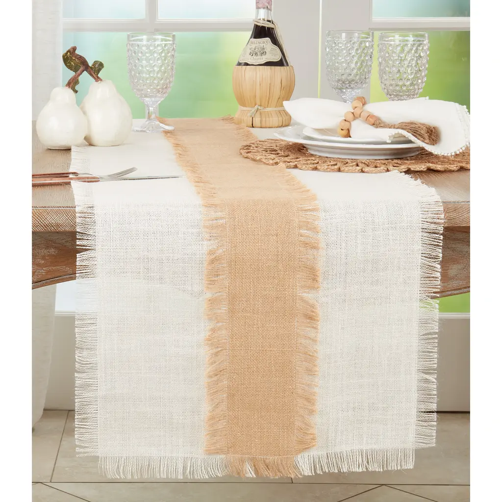 Table Runner With Banded Jute Design - 16"x72" - Ivory