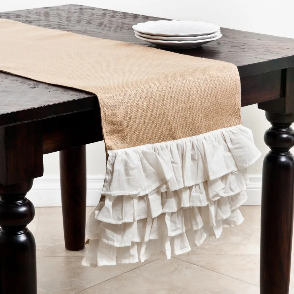 This casual, yet chic Banded Design Jute Table Runner is the perfect backdrop for everyday meals or informal entertaining. Made with 100% jute, the runner adds a natural look and feel to any table décor. Pair it with matching placemats for a coordinated look or with solid colors in contrasting tones.Features: