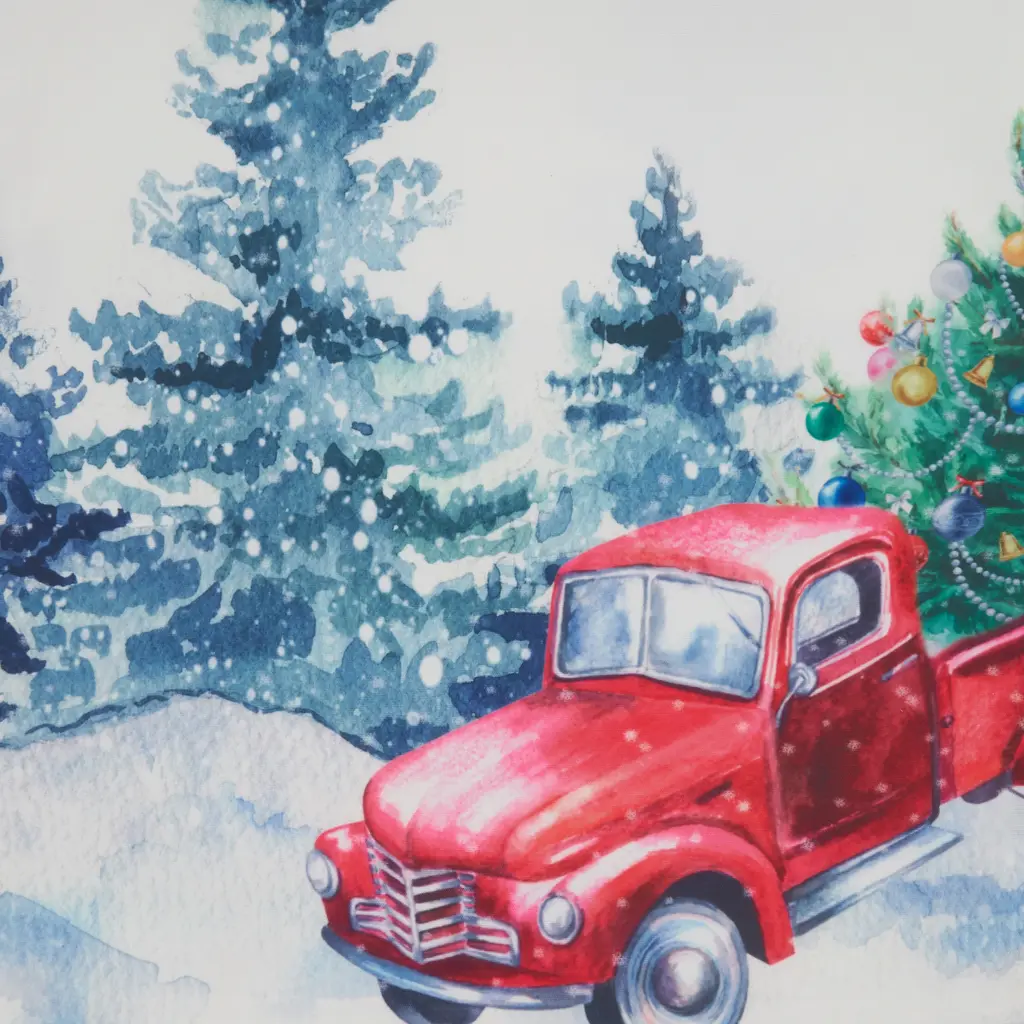 Perfect for both casual occasions and hosting dinners, the Christmas Truck Table Runner adds a touch of vintage whimsy to your tabletop. It features a light background that makes it easy to pair with a wide range of dinnerware and table linens. Looks great against solid colors or coordinate with other holiday decor.Features: