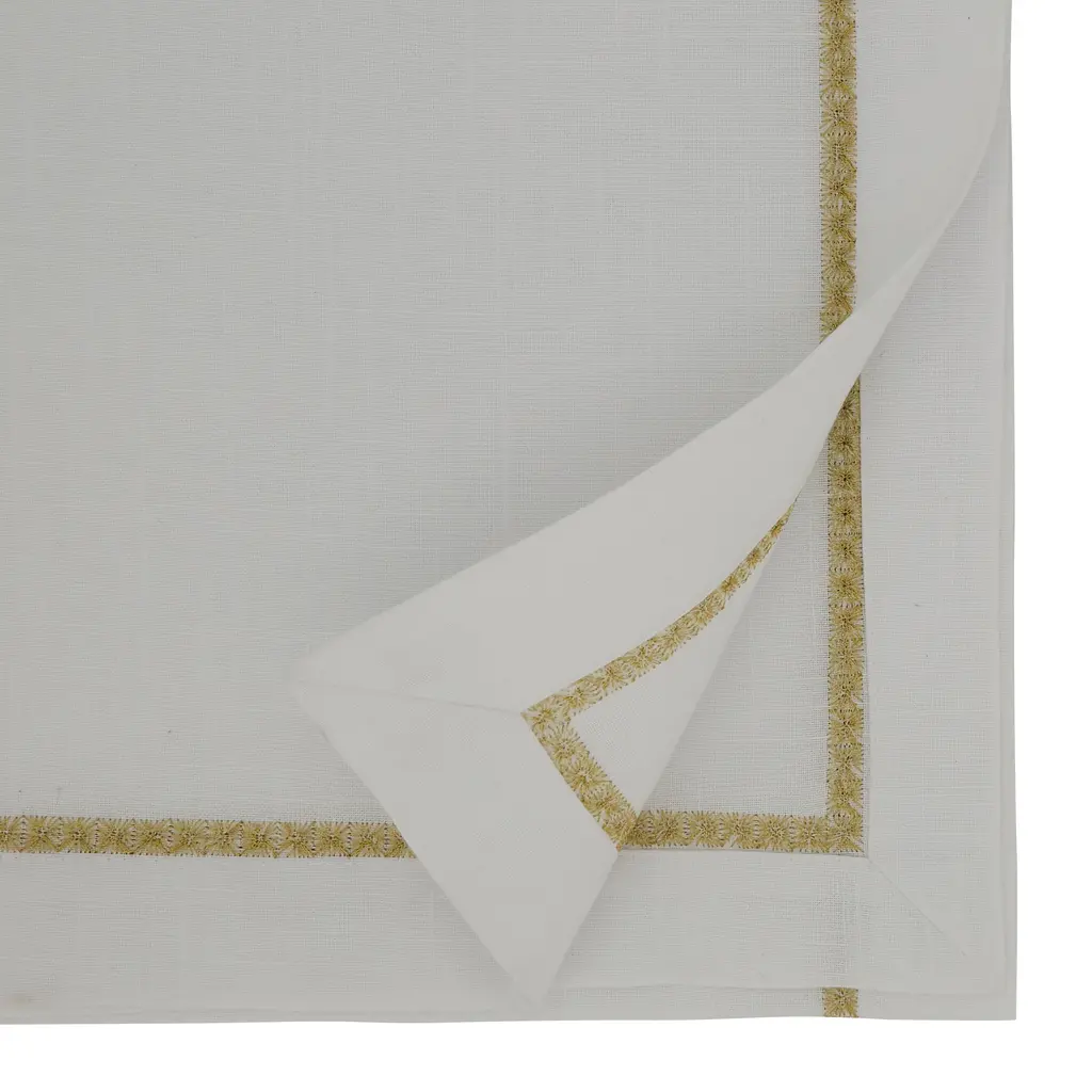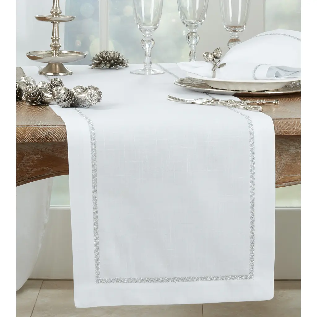 Simple, yet refined, the Embroidered Border Table Runner can be easily dressed up for special occasions and entertaining guests. It features a crisp white background that makes for the ideal canvas for your dinner setting, while the embroidered border adds the perfect touch of color. Pair it with matching dinner napkins.Features: