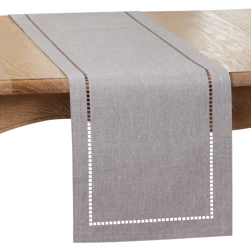 Table Runner With Laser-Cut Hemstitch - 14"x108" - Grey