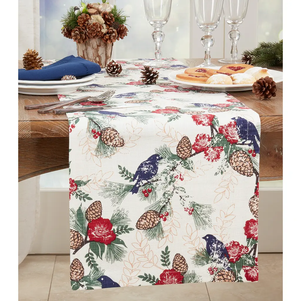 Table Runner With Pinecones And Birds Design - 14"x72"