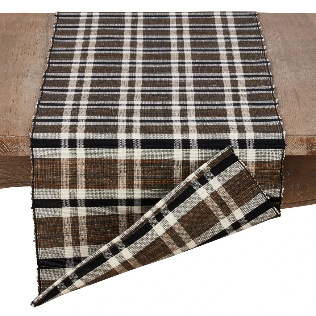 Table Runner With Plaid Woven Water Hyacinth Design - 16" X 72" - Turquoise