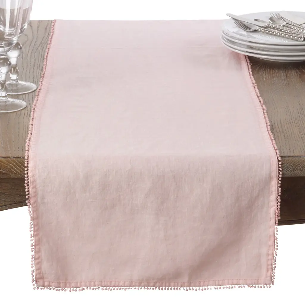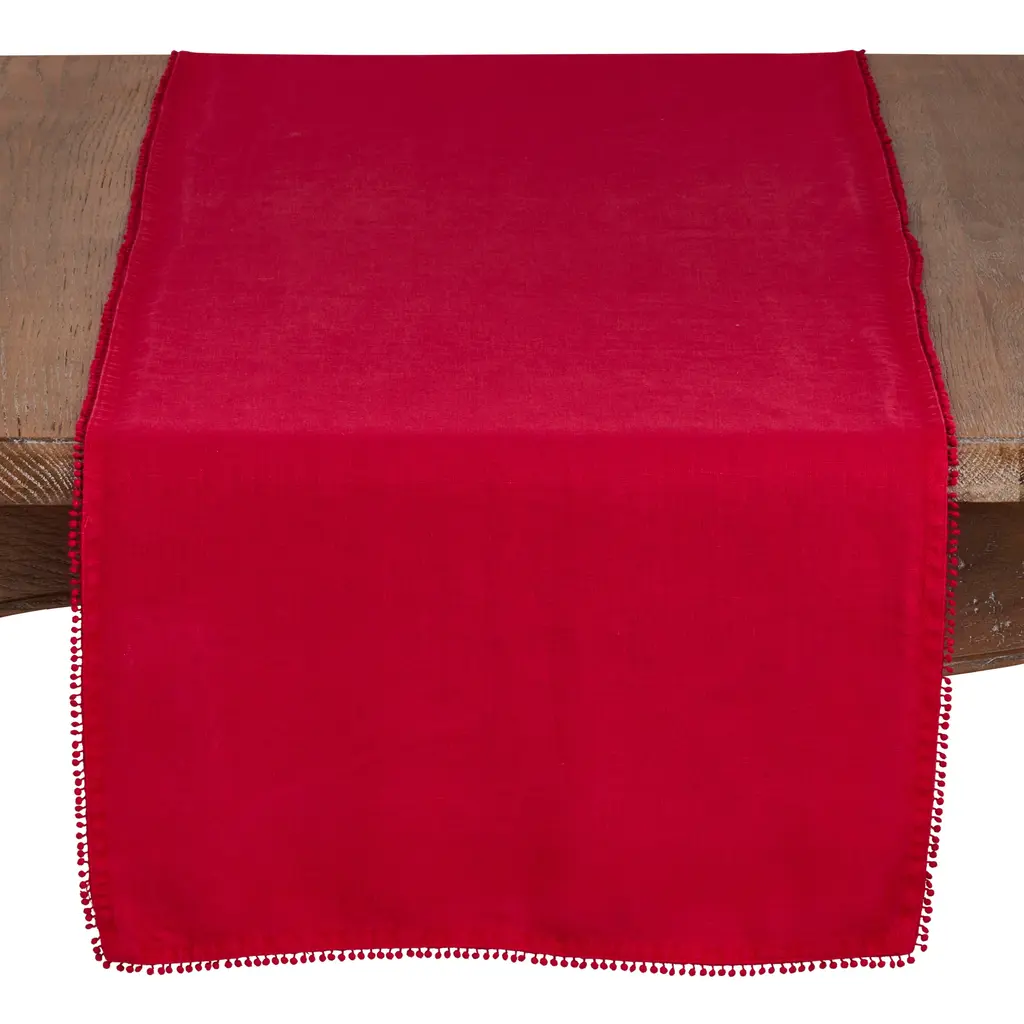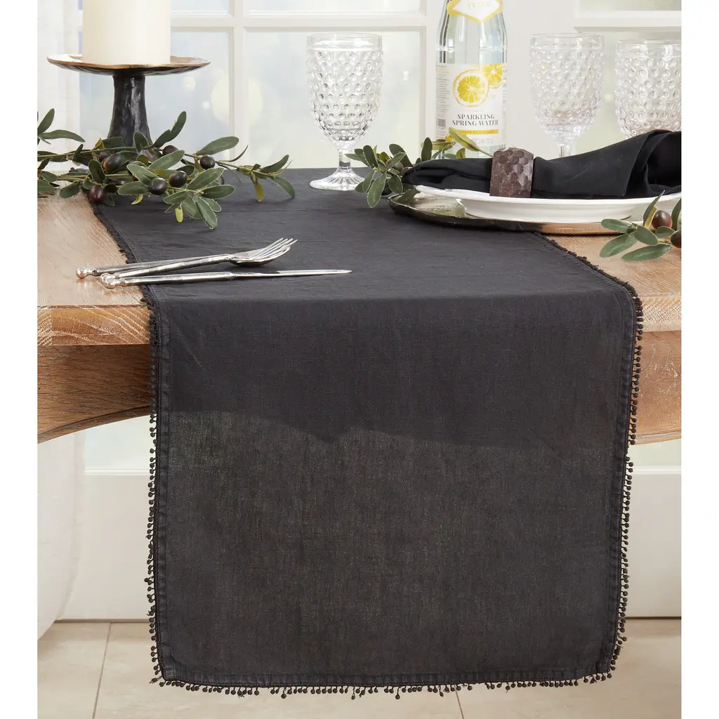 Perfect for casual dining as well as everyday meals, the Pom Pom Design Table Runner brings texture and depth to the tabletop. It features a solid color construction, which makes it easy to pair with a wide range of dinnerware and table linens. Coordinate with lighter tones to achieve a contrasting effect.Features: