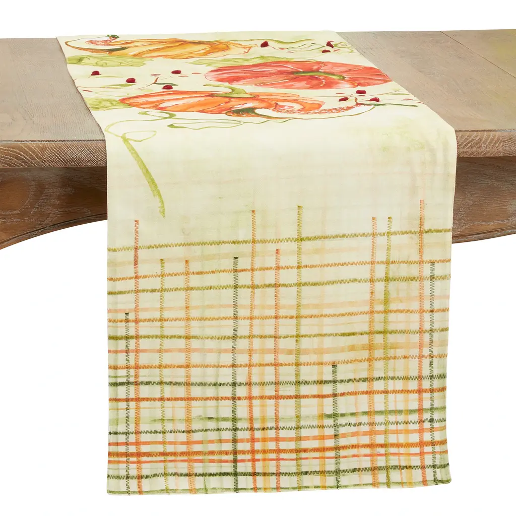 Perfect for Thanksgiving as well as the entire fall season, this charming Pumpkin Design Table Runner brings color, warmth and texture to your tabletop. Made with high-quality cotton, it delivers softness and durability at the same time. Pair with solid colors within the same palette for a beautifully coordinated look.Features: