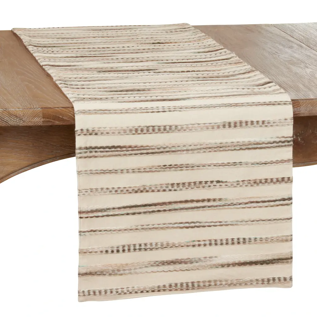 Create a relaxed table setting with this textured Woven Striped Table Runner. It helps you set a lovely table, whether on its own or layered with other textures and patterns. The runner brings rustic beauty to your dining decor.Features:
