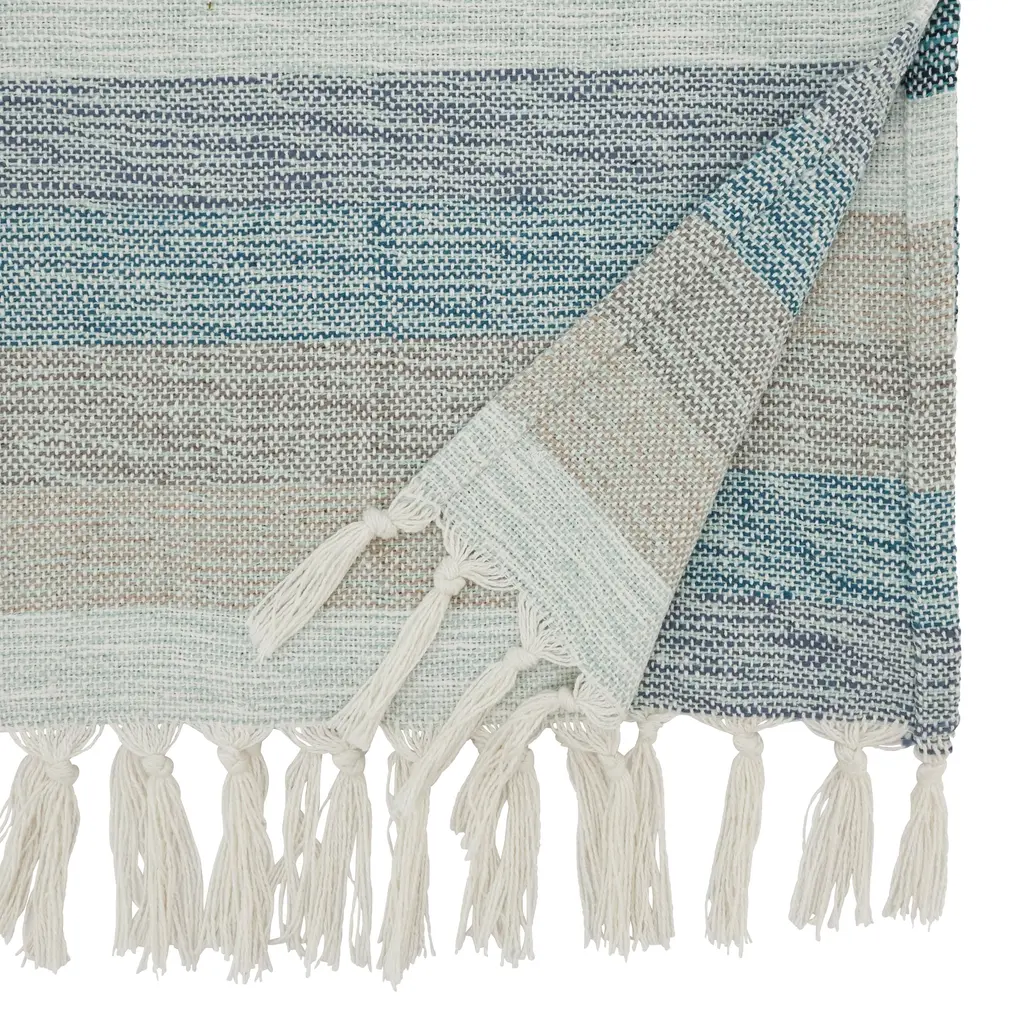 Perfect for summer décor, the coastal blue Stripe Design Table Runner is a cheerful backdrop for your tabletop. It brings color and dimension to your dining area, while the rich fringes on the short edges add texture to its overall appeal. Made with 100 percent cotton, the table runner is soft and durable.Features: