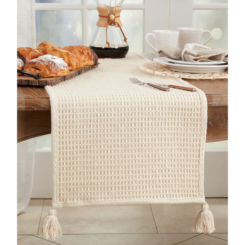 Ideal for everyday meals and casual entertaining, this stylish Waffle Weave Design Table Runner brings beautiful texture and dimension to your tabletop. It features a solid color design, which makes it easy to fit within existing décor as well as to pair with a wide range of dinnerware. The runner is made with 100% cotton, perfect for lasting use.Features: