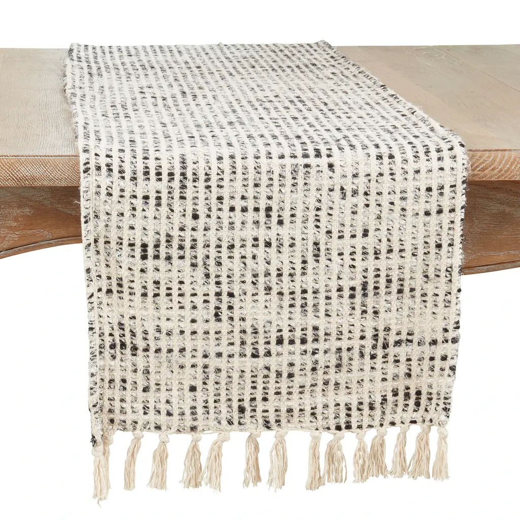 The Woven Stripe Table Runner is an excellent choice of a classic dinning fixture that can style up the look and feel of your tabletop. Its casual style and natural tone makes it easy to pair with a wide range of tableware, while the fringed edges add a playful note.Features: